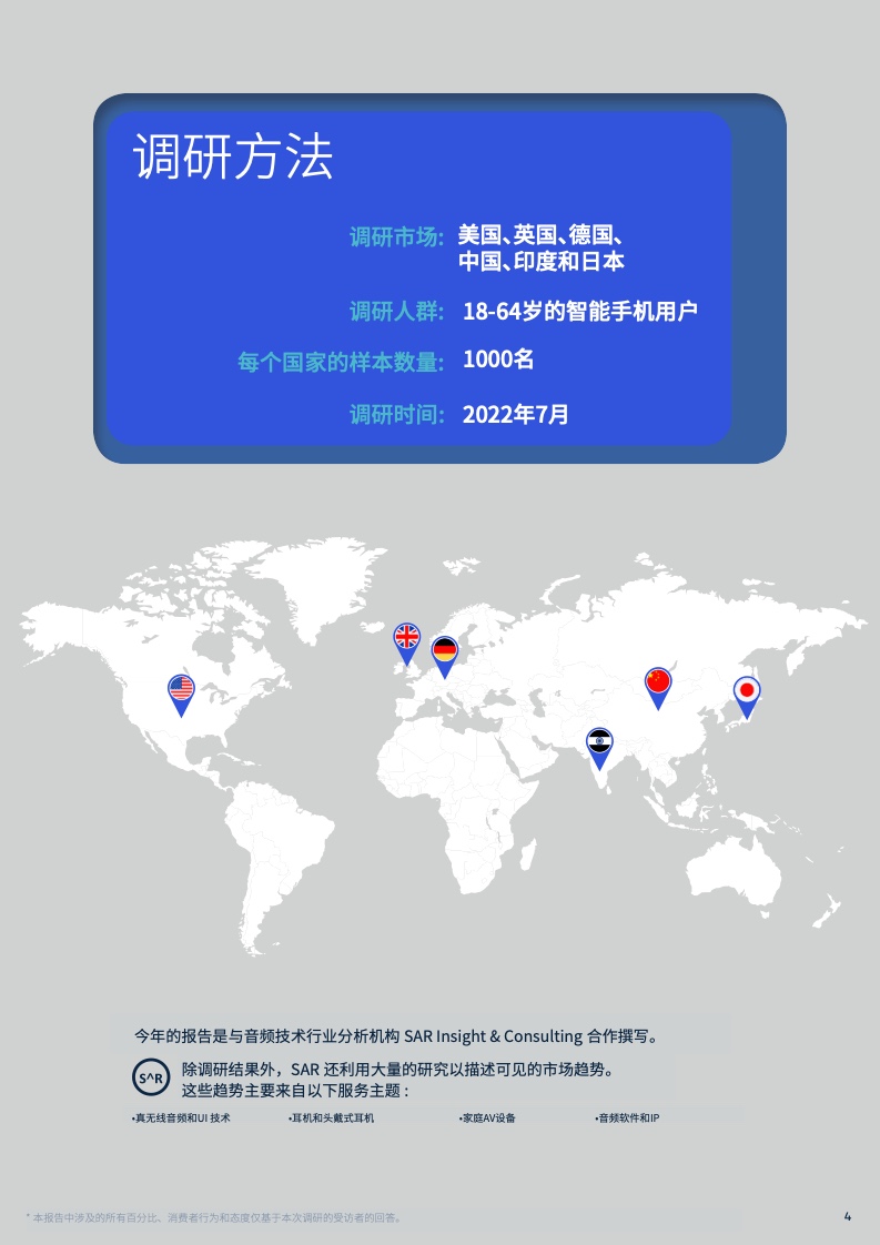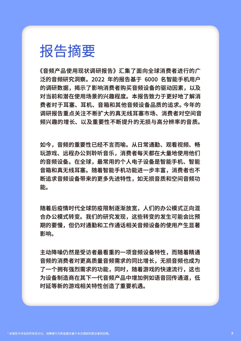 《2022音频产品使用现状调研报告》通过对全球智能手机用户的调研与分析洞察,得出六大关键点: