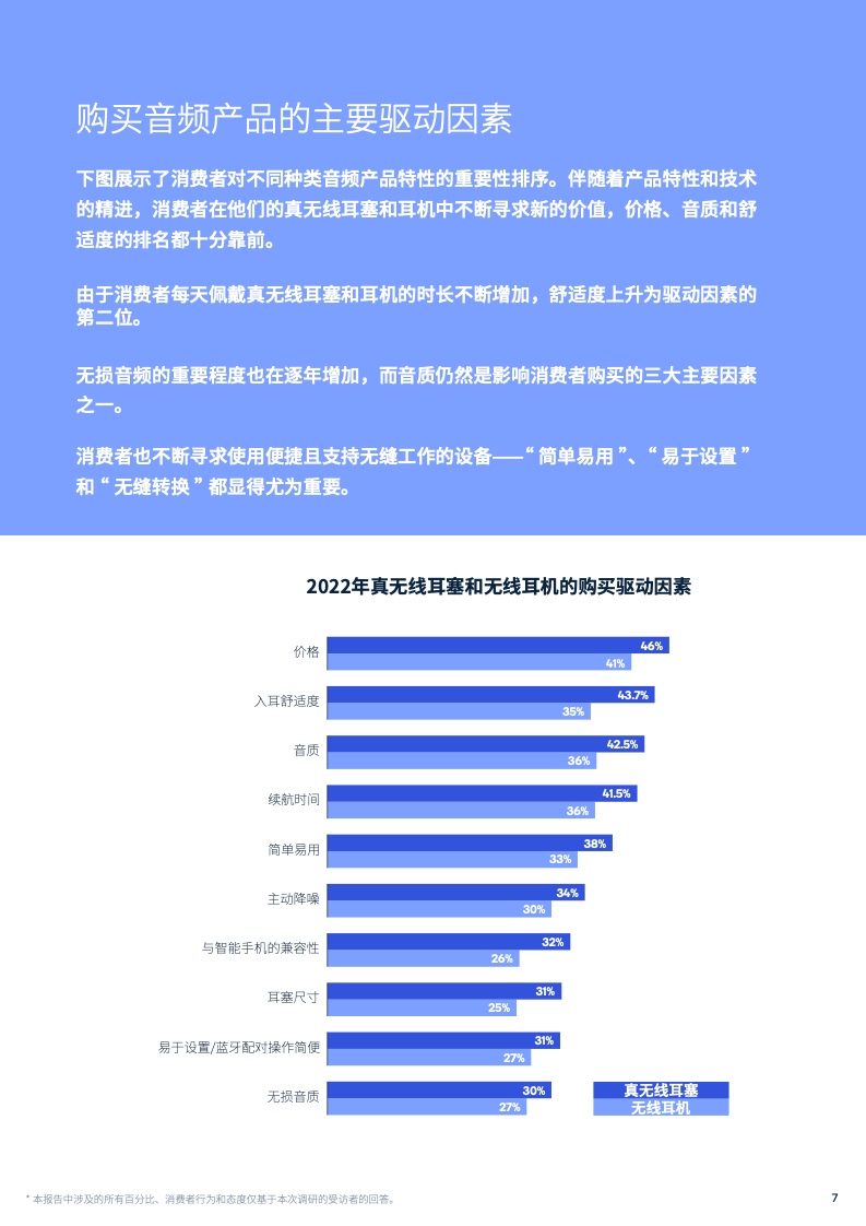 购买音频产品的主要驱动因素