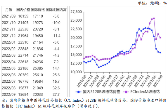 【后期走势】国内市场,新棉丰产已成定局,叠加上年度大量陈棉库存结转至新年度,国内棉花供给总体充足。下游订单不足情况未见明显好转,预计棉价上行动力不足。国际市场,全球经济衰退风险持续上升,拖累棉花消费前景。随着北半球新棉陆续上市,预计短期国际棉价下行空间较大。
