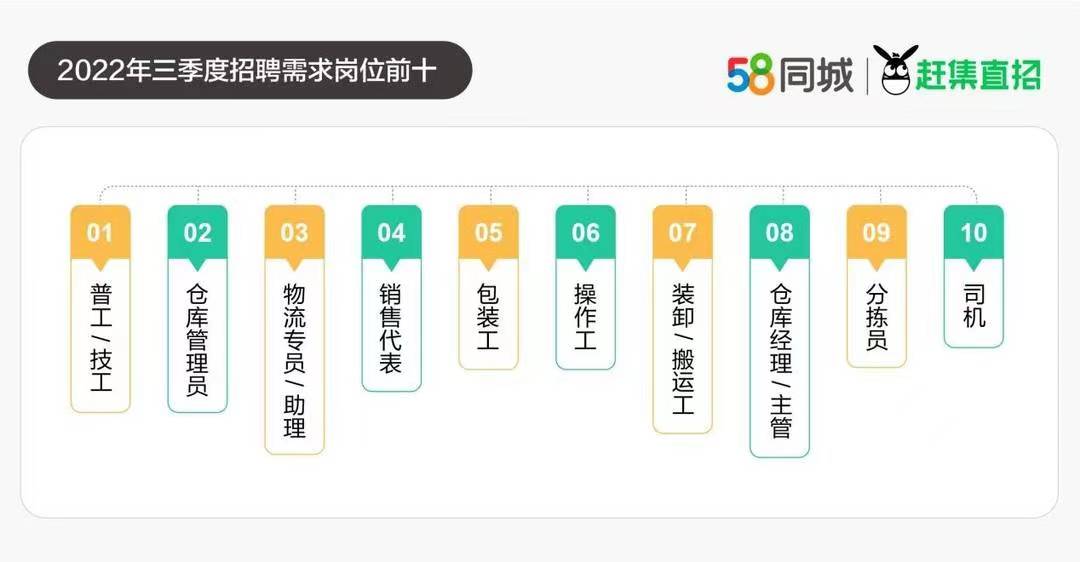 伴随制造业全面触网,先进制造、智能制造等实体产业的“工厂”也加大了对数字化人才的吸引和激励力度。2022年三季度,企业招聘最旺盛的是普工/技工类职位,其次是仓库管理员、物流专员/助理等。其中,销售代表、仓库经理职位环比增长尤为明显。