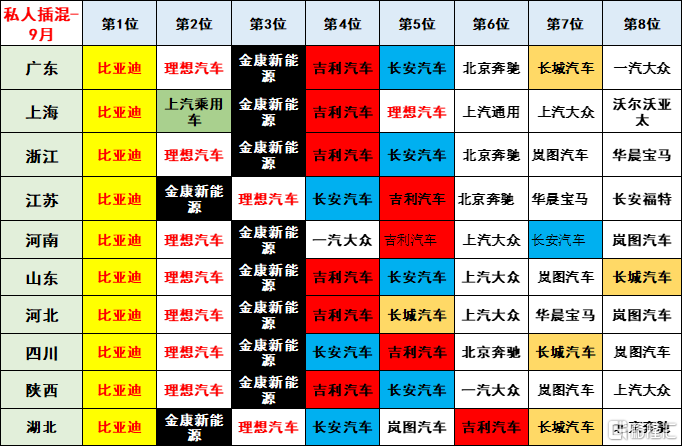 9.9 月各区域市场的企业差异化很强