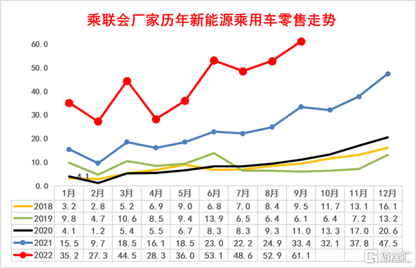9 月新能源乘用车零售销量达到 61.1 万辆,同比增长 83%,环比增 9%,1-9 月形成趋势性上升走势。1-9 月新能源乘用车国内零售基本没有季节规律,季度内走势也较强。