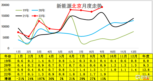 6-9 月的北京新能源销量较好,考虑在缺乏指标的情况下,而且特斯拉供车较少,北京 9 月的表现也是算平稳了。北京的新能源车档次总体务实,这也是家用需求较好的体现。
