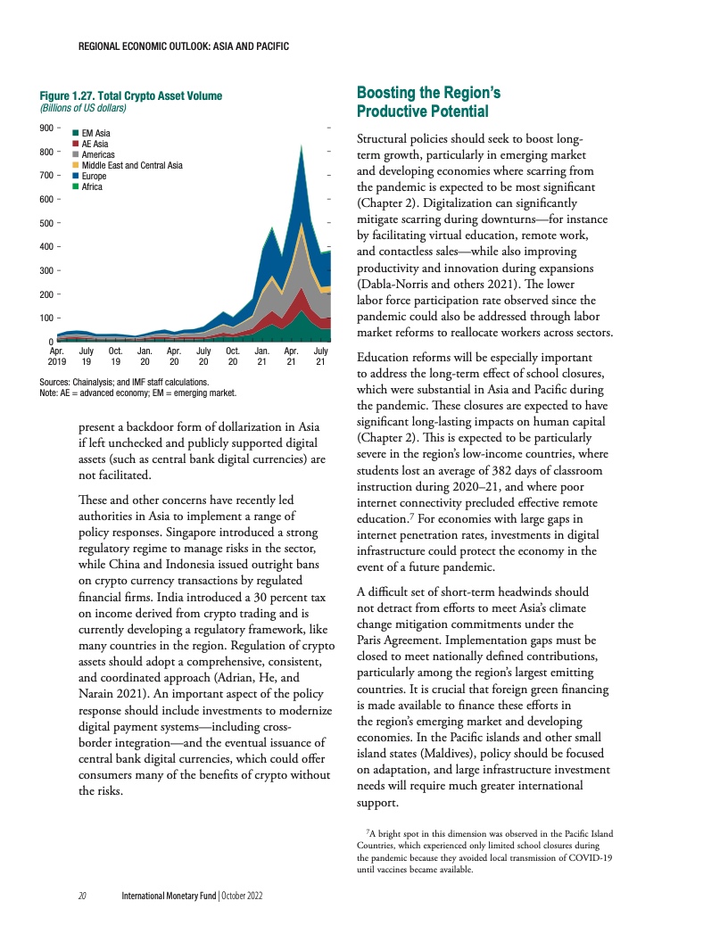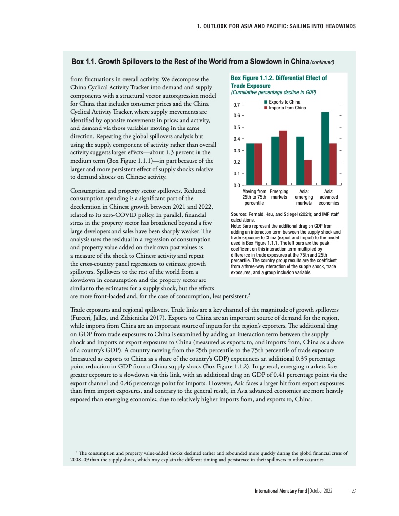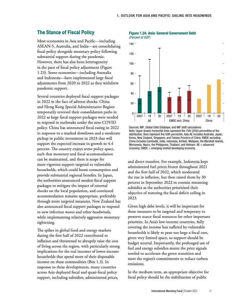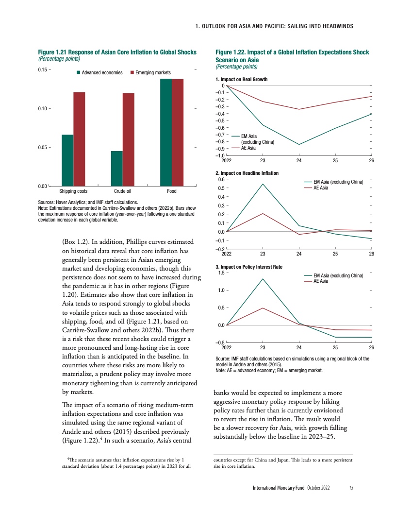 “充满挑战的形势正在加剧新冠疫情带来的中期经济创伤。与疫情前的预测相比,疫情预计将导致产出长期下降,并且这种长期创伤效应在亚太地区将最为严重。相对于其他地区,亚洲经济增长不足在很大程度上可以归因于疫情后投资水平的下降。这些产出损失在依赖旅游业的经济体和高债务国极为严重。
