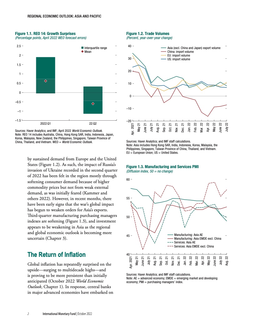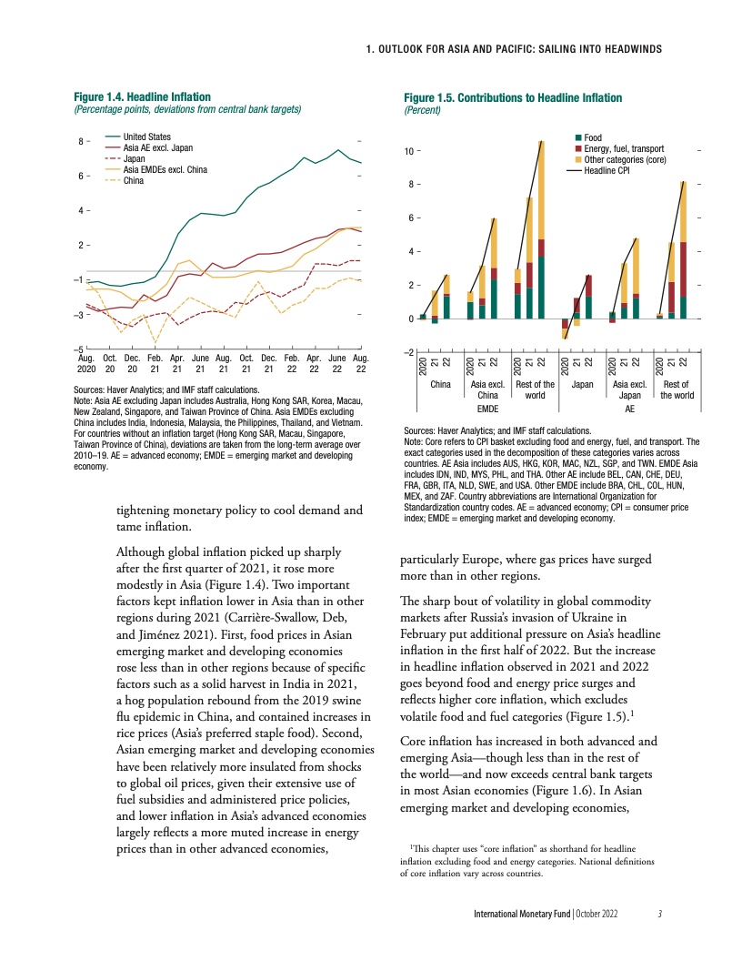 虽然 2021 年亚洲通胀的上升较其他地区更为温和,但 2 月份俄乌战争全球大宗商品市场的剧烈波动给 2022 年上半年亚洲的整体通胀带来了额外的压力。这一增长是由粮食和燃料价格上涨推动的,特别是在亚洲新兴市场和发展中经济体,但也反映出该地区在复苏过程中核心通胀率的上升。