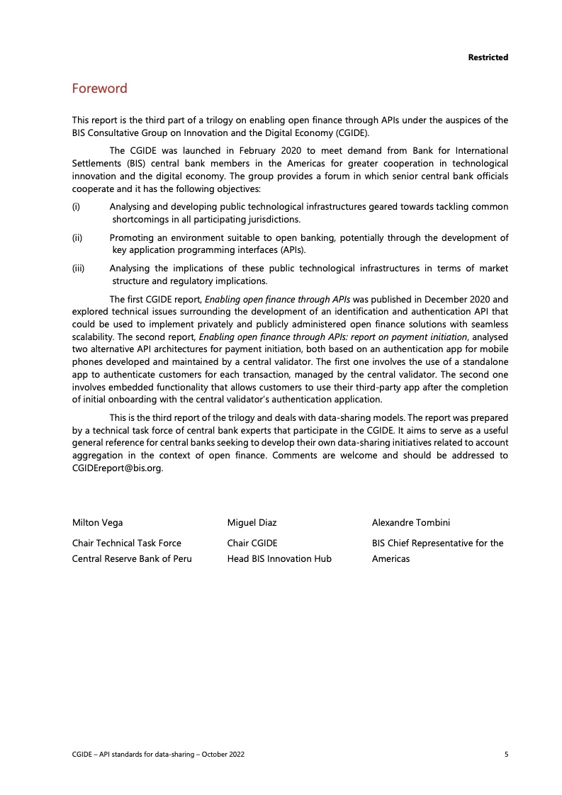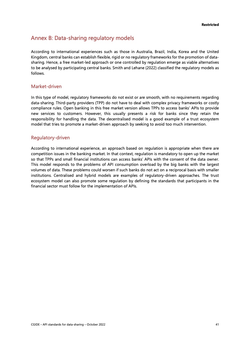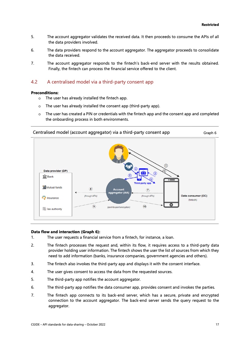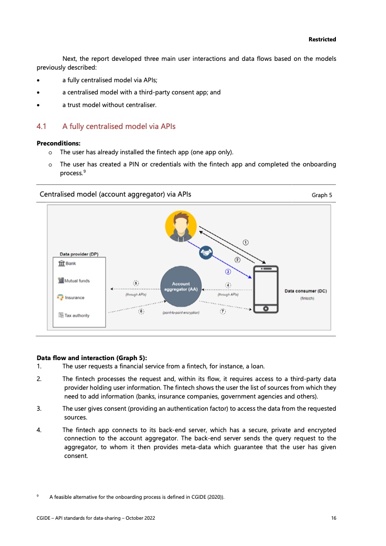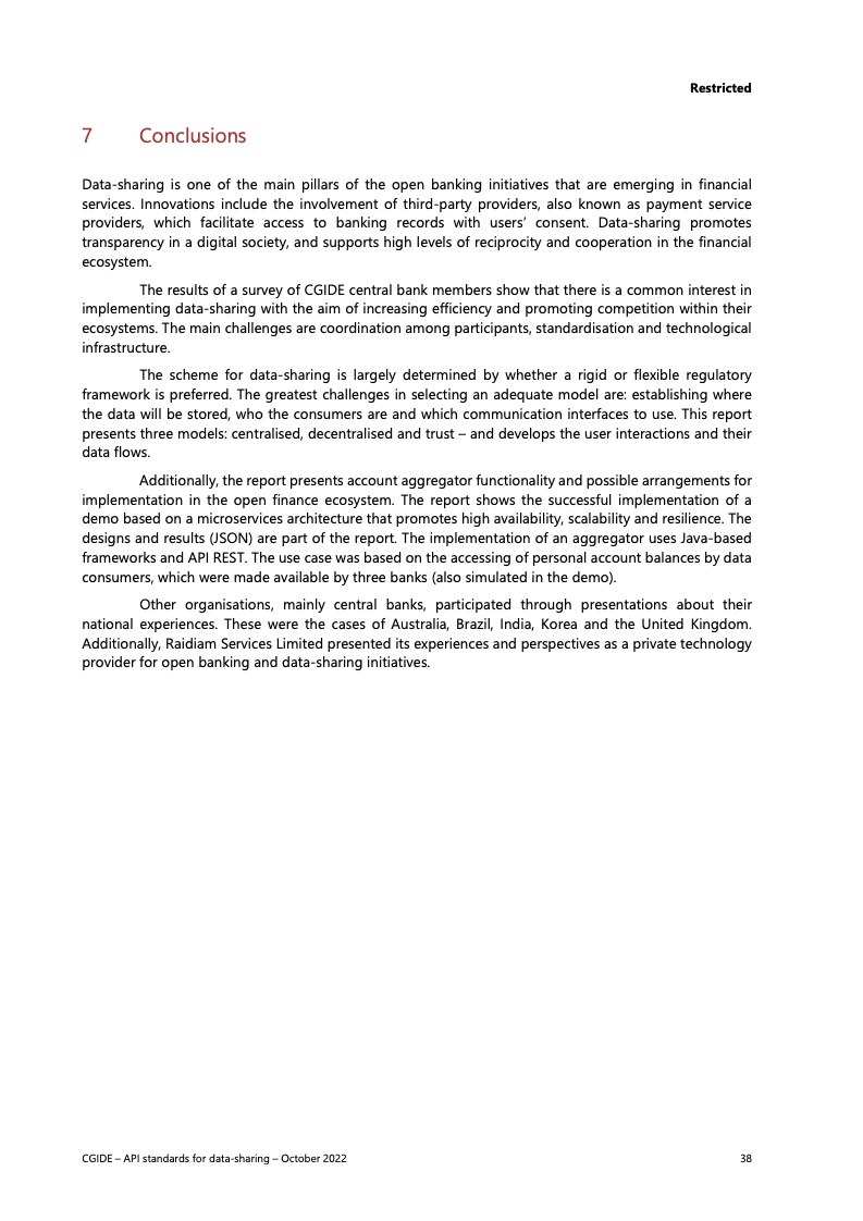 这份报告也是国际清算银行创新和数字经济咨询小组(CGIDE)主导的通过API实现开放金融三部曲的第三部分。对CGIDE中央银行成员的调查显示,各方在实施数据共享以提高效率和促进合作方面存在共同利益,而目前主要的挑战在于参与者之间的协调、标准化和技术基础设施。报告提出了集中、去中心化和托管三种数据共享模式,并开发了用户交互及数据流。