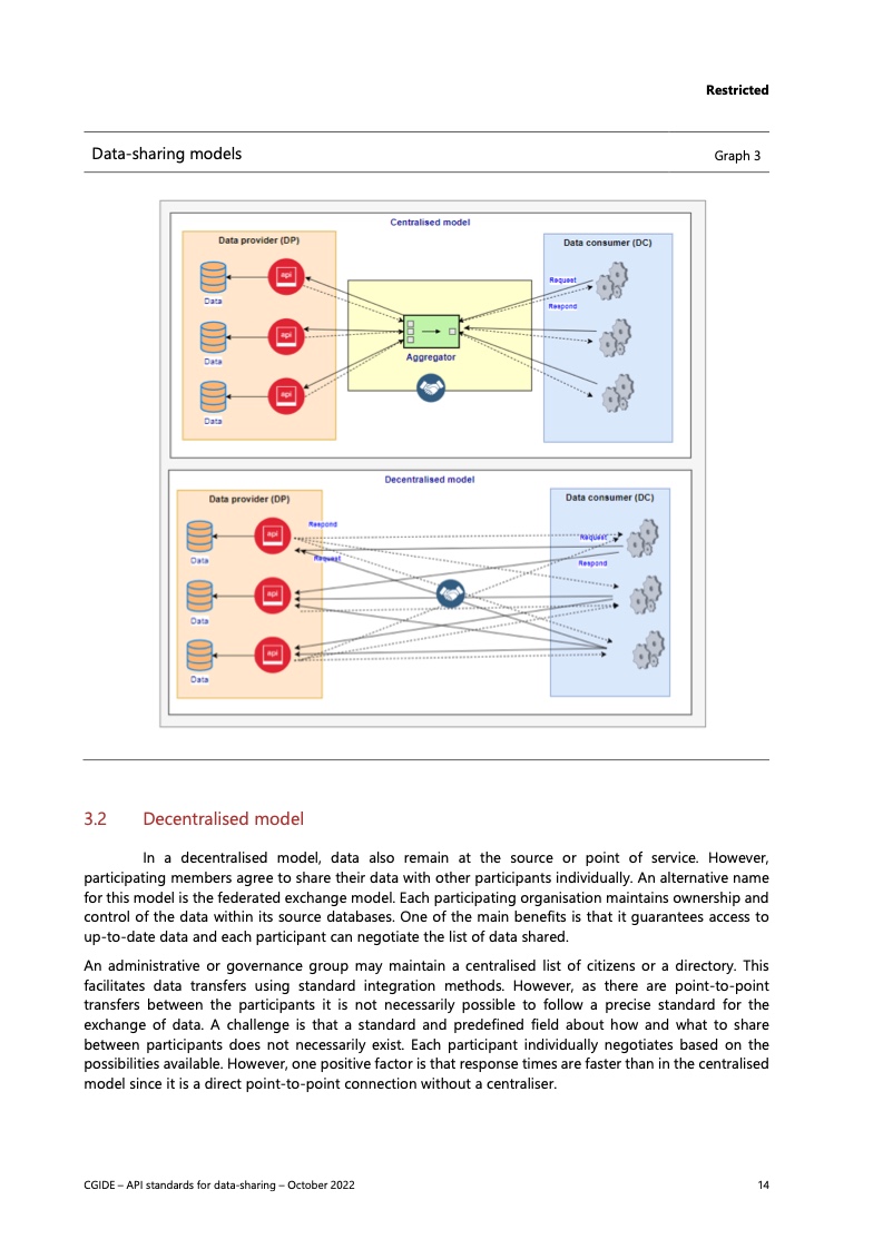 报告展示了一个基于微服务架构概念的成功实现,该架构促进了高可用性、可伸缩性和复原力。数据共享方案在很大程度上取决于监管框架是僵化还是灵活。选择适当模型的最大挑战在于确定数据将存储在哪里,谁是消费者,以及使用哪些通信接口。