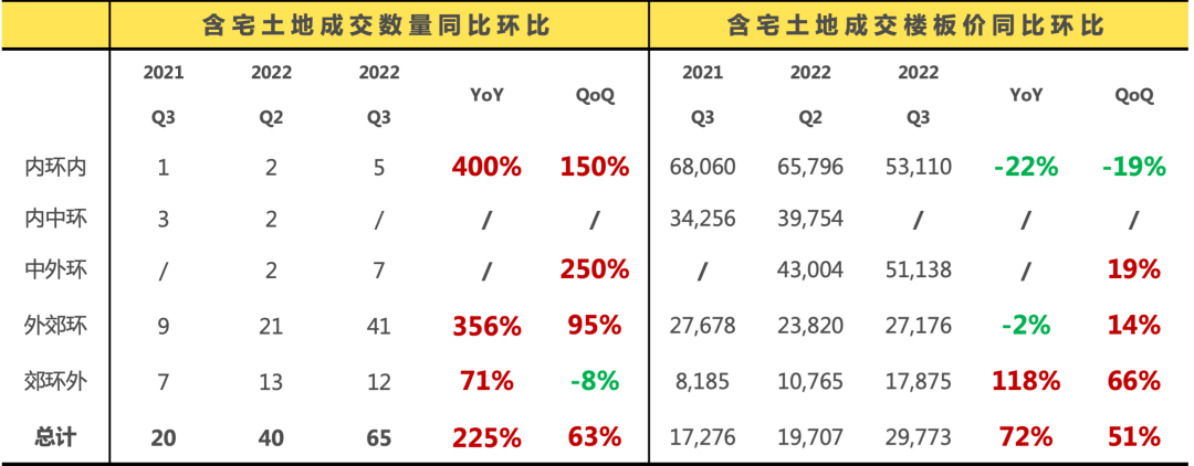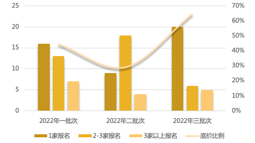 底价成交比例、3家以上报名地块数量均增加,两级分化趋势更明显