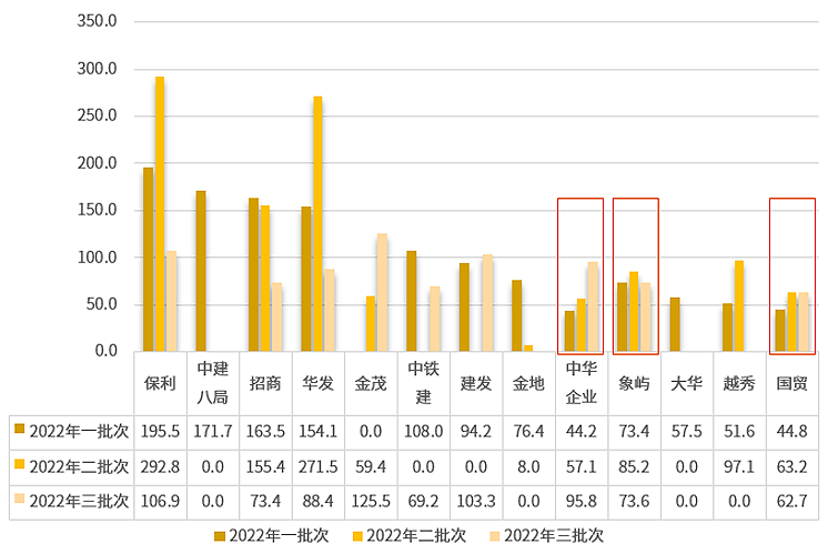 典型房企中仅中华企业、国贸、象屿在持续投资力度(三批次均参拍,投入金额未骤减)