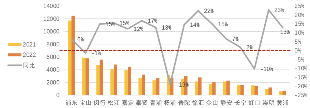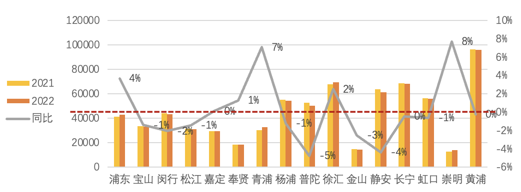 ➣ 核心区域(黄浦、静安、徐汇、长宁):2022年Q3网签成交量皆保持同比上涨,后疫情时代,核心区域仍强势,加之一手供应稀缺,如徐汇区涨幅高达22%,徐汇滨江成交的活跃带动了区域的成交热度。