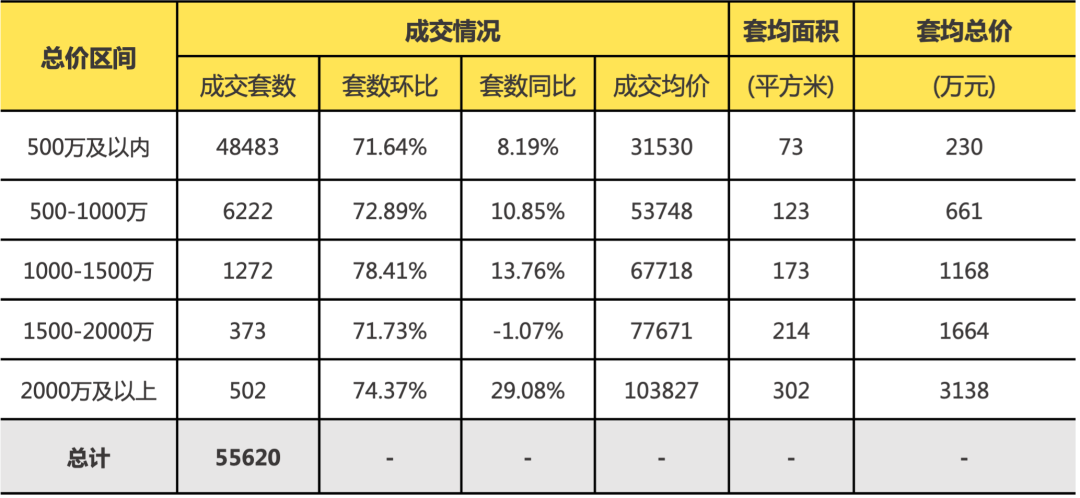 ➣ 高端市场:豪宅市场分化加剧, 2000万以上总价段豪宅成交量涨势显著,高端客户对于豪宅所能带来的生活品质提高更加认可,对套均面积的需求亦不断提升。