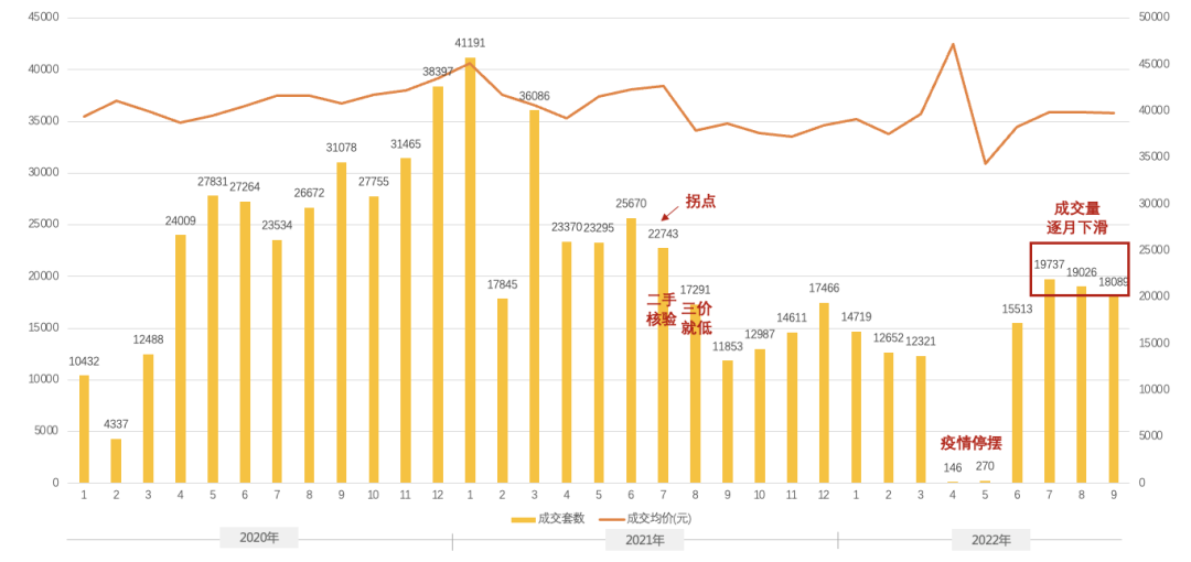 ➣ 成交: Q3网签成交量延续了疫情封控结束后的6月热度,但7-9月成交量逐月下滑,成交均价同比下跌。