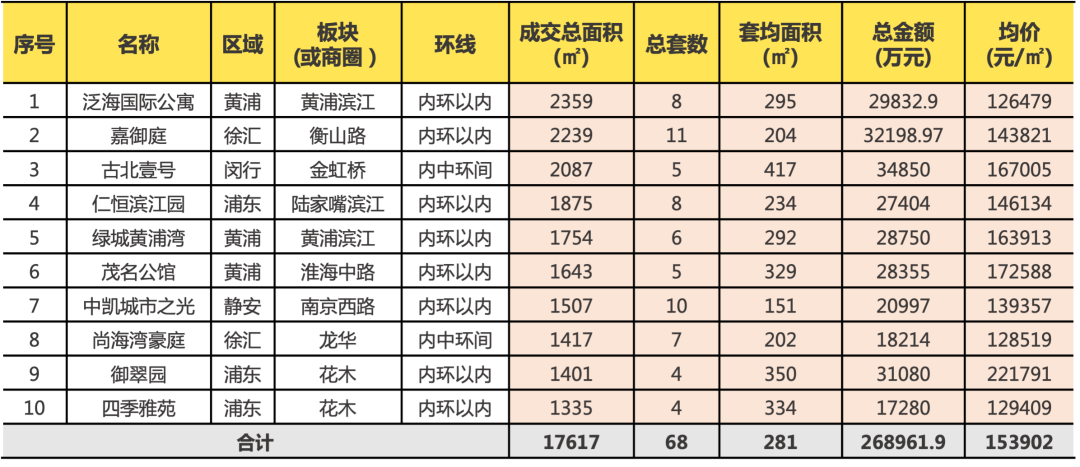 成交均价:核心区域基本维稳,青浦崇明显著增长,碧云板块进入前五