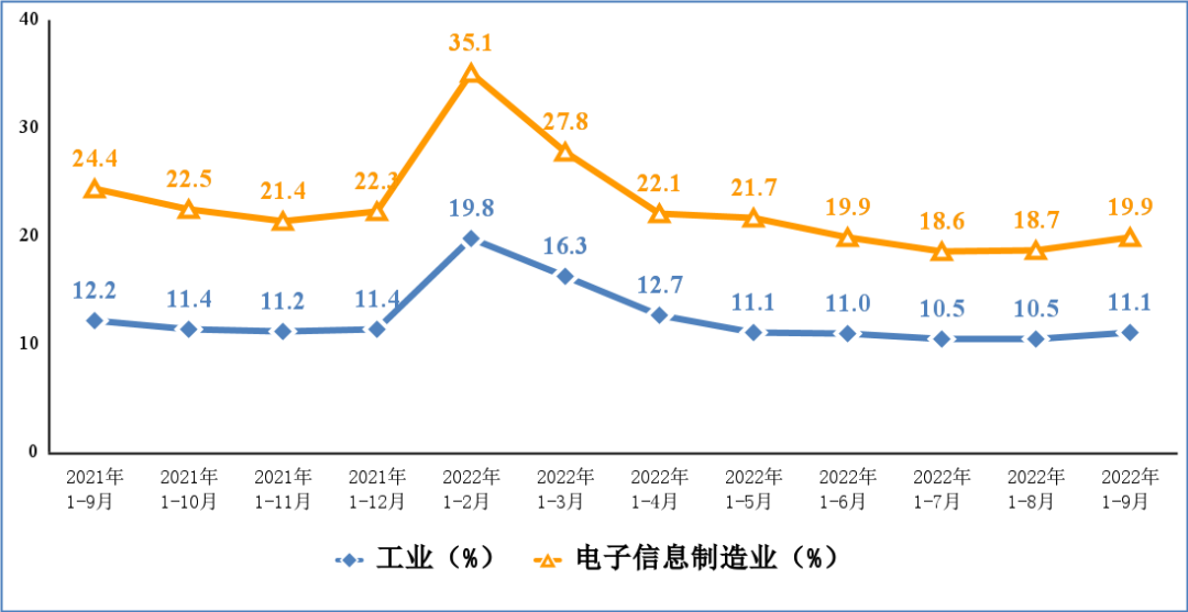 2.文中“电子信息制造业”与国民经济行业分类中的“计算机、通信和其他电子设备制造业”为同一口径。)