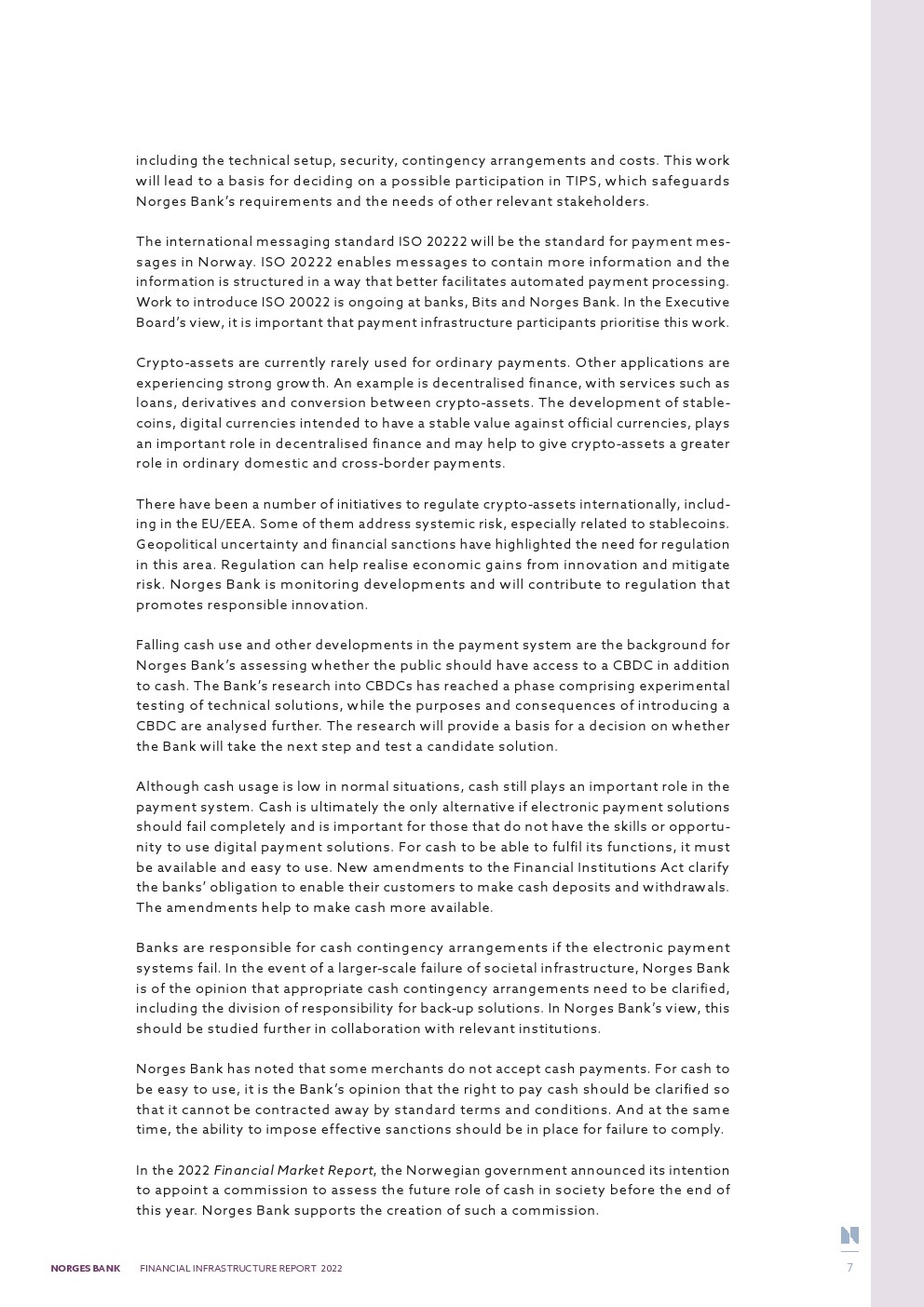 随着国际化、新的提供商和新的支付方式的出现,支付领域正在不断发展。加密资产目前很少用于普通支付,而其他应用程序正呈现强劲增长。网络威胁正在增加。这些结构性变化是挪威银行计划和正在采取的一些措施的驱动因素,并确保公众在未来也能以挪威克朗高效安全地支付。