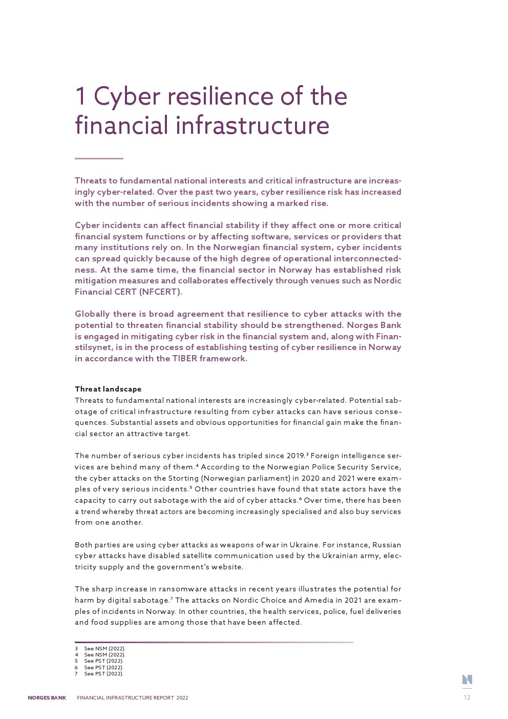 挪威银行发布了“2022年金融基础设施报告”,分析了挪威金融行业。
