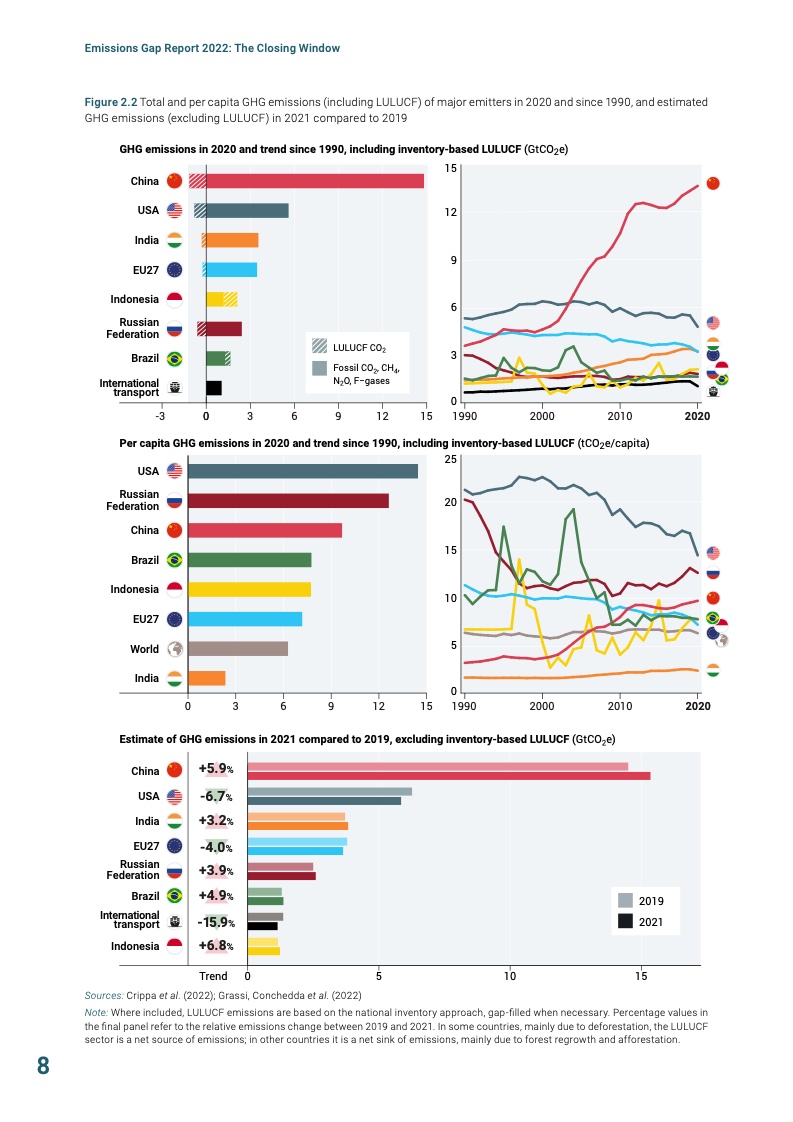 去年在英国格拉斯哥举行的第26届联合国气候变化大会(COP26)以来,各国的最新气候承诺对预测的2030年排放量的影响微乎其微,全球离《巴黎协定》的1.5℃温升目标还很远。根据最新的数据估算,到本世纪末,气温将上升2.8°C,尽管实施目前的承诺也只能将温度上升降低到2.4-2.6℃。