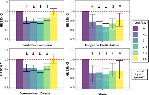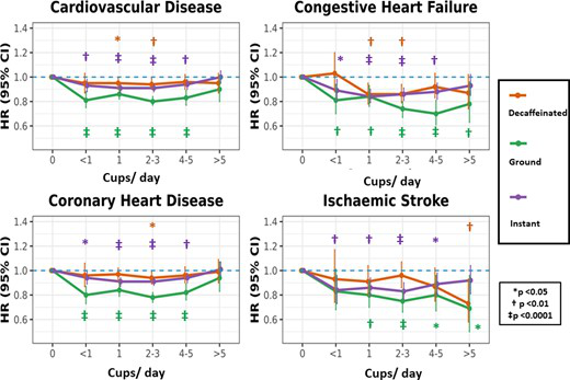 咖啡亚型摄入量与心血管疾病。(图片来源:European Journal of Preventive Cardiology)