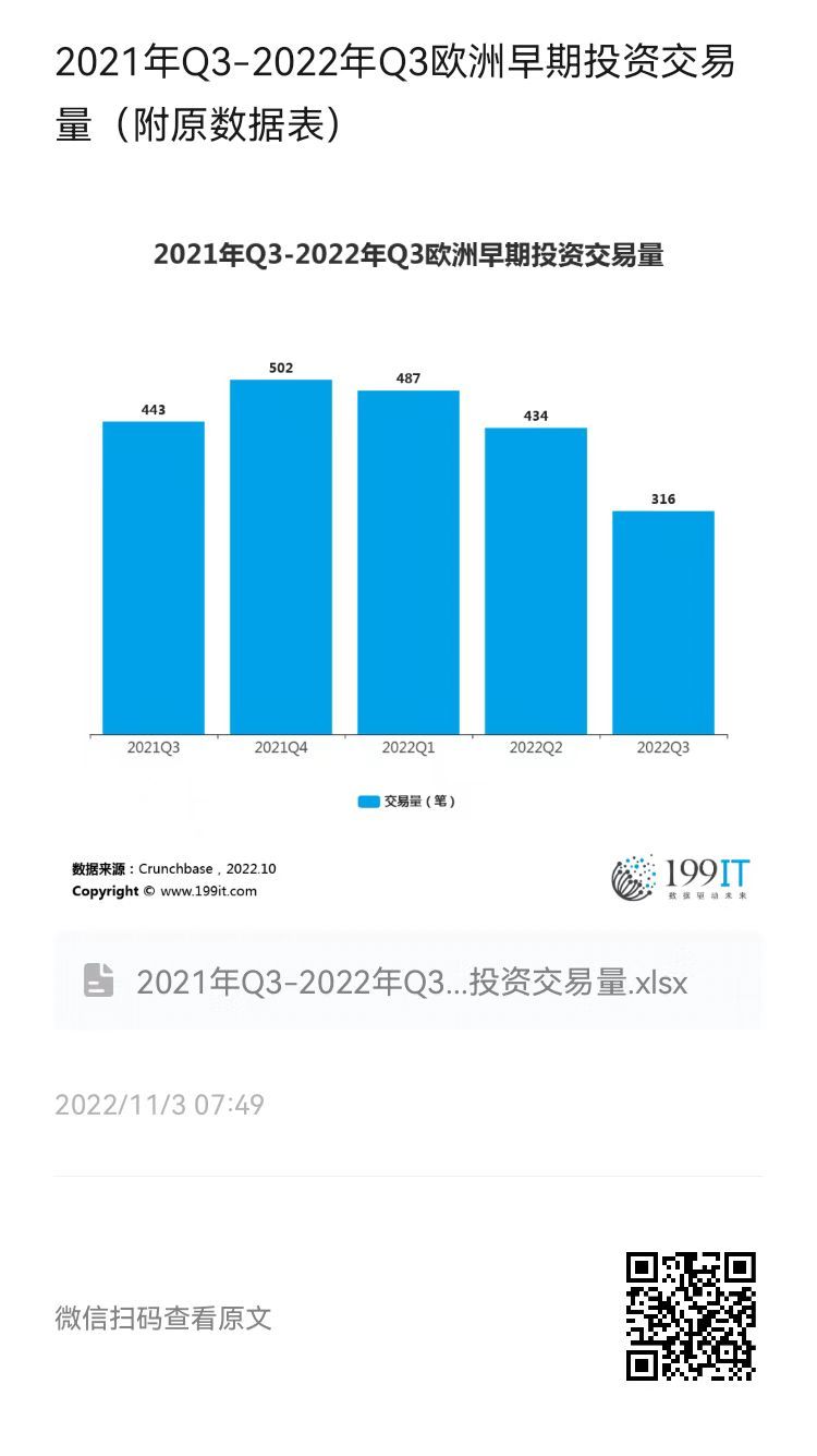 2021年Q3-2022年Q3欧洲早期投资交易量(附原数据表) ​​​​