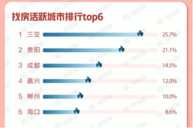 在新增挂牌房源量方面,三亚、贵阳、成都、大连、温州等城市的二手房新增挂牌房源量涨幅较高,其中三亚环比上涨超过 3 倍,贵阳环比涨幅达到 140.6%。