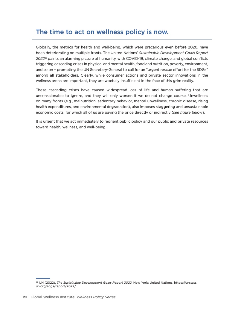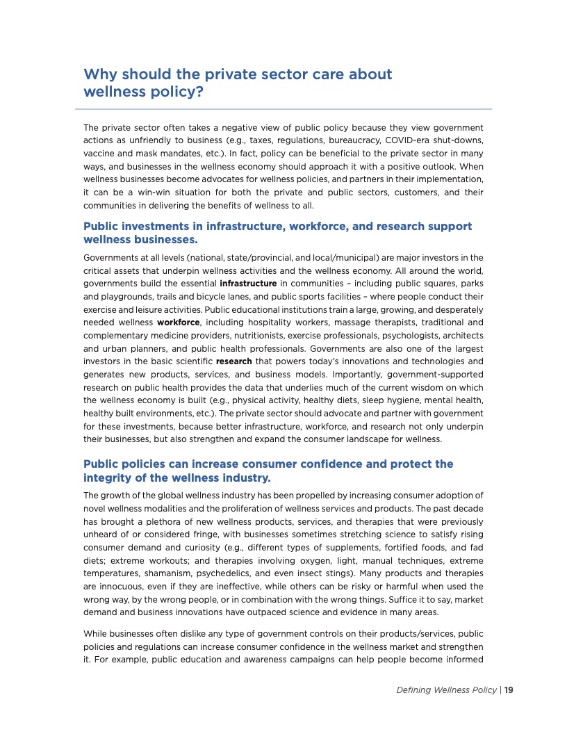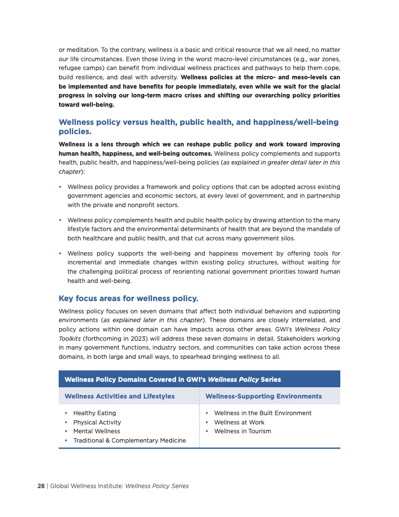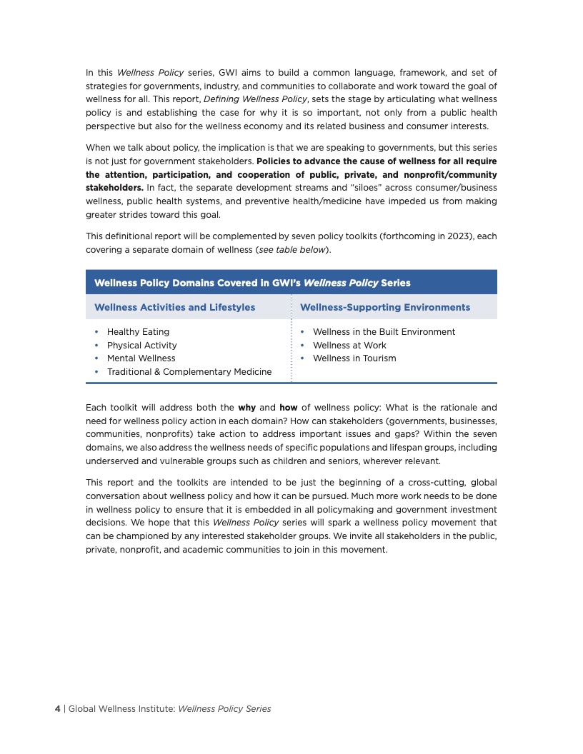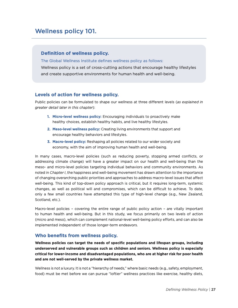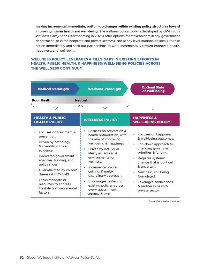 此业界首份康养政策研究报告,就各国政府着手制定康养政策之必要性与迫切性提供了有力的证据支持,并表明了以疾病护理为重点的医疗系统与无法照顾全民健康的康养企业之间,应有所调和。同时,此报告也针对各国在康养方面的支出、人民健康水平以及幸福指数首次做了定量分析,并指出了此三者之间的密切关联。