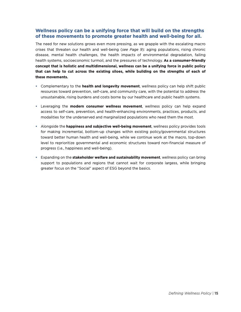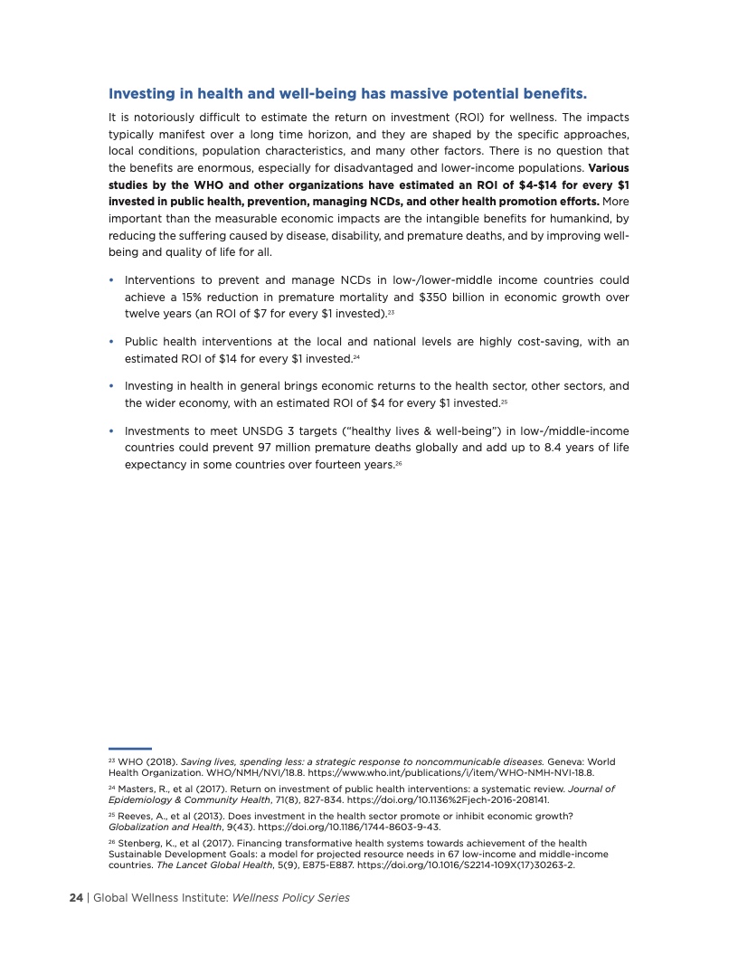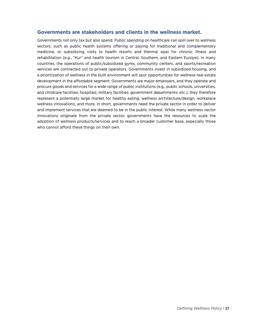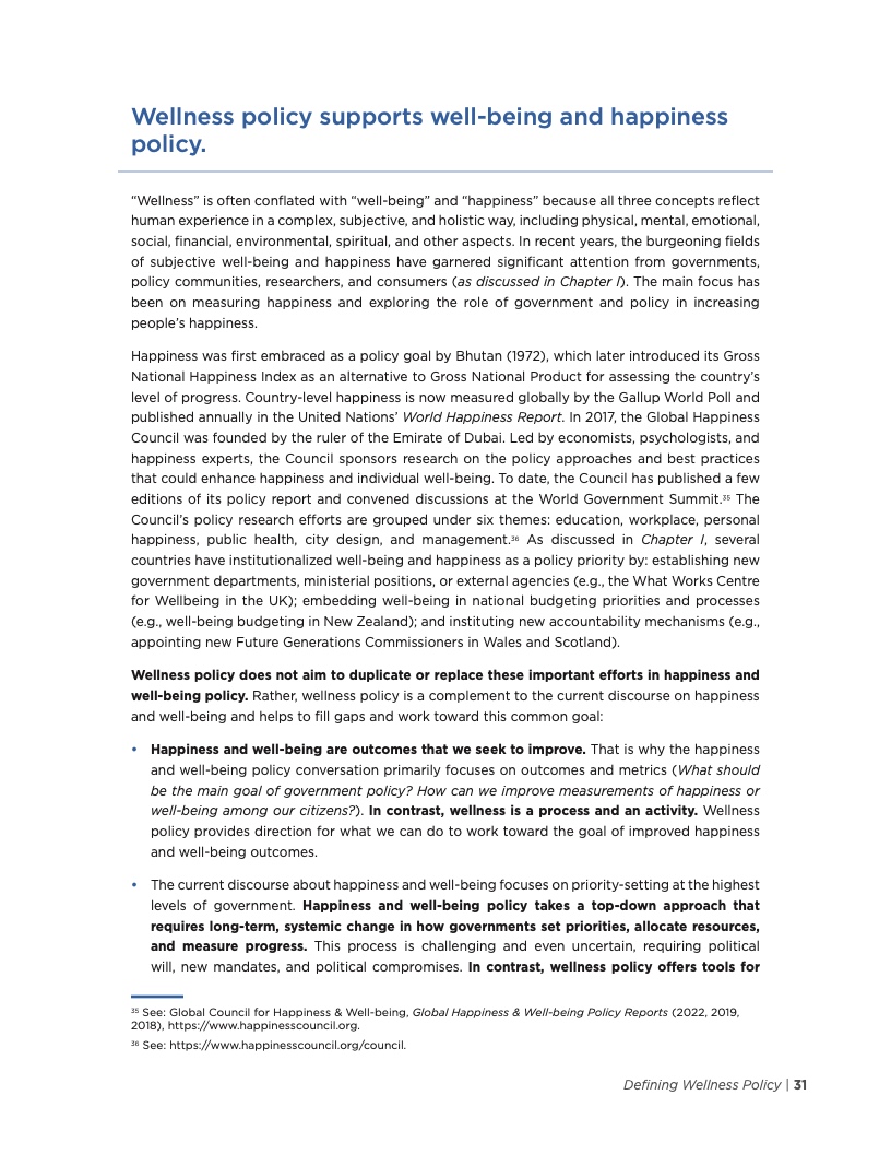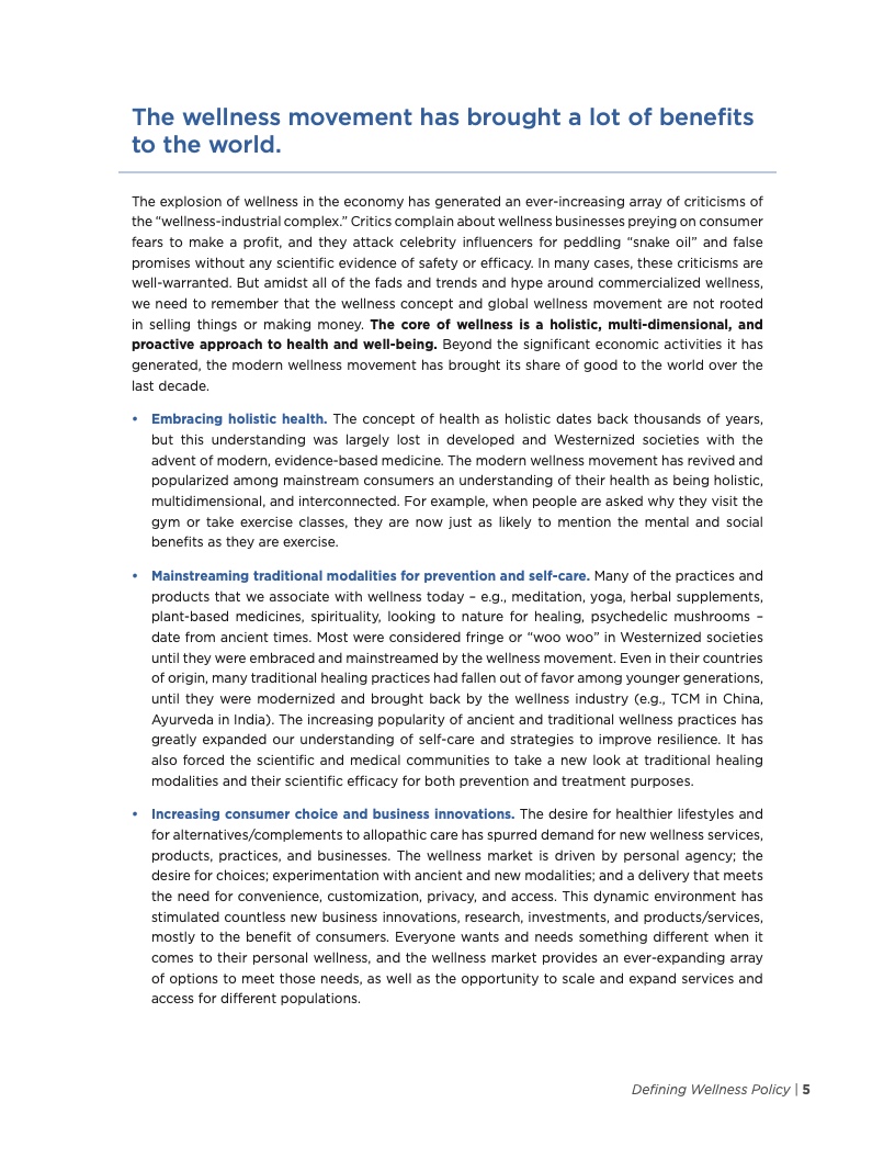 此业界首份康养政策研究报告,就各国政府着手制定康养政策之必要性与迫切性提供了有力的证据支持,并表明了以疾病护理为重点的医疗系统与无法照顾全民健康的康养企业之间,应有所调和。同时,此报告也针对各国在康养方面的支出、人民健康水平以及幸福指数首次做了定量分析,并指出了此三者之间的密切关联。
