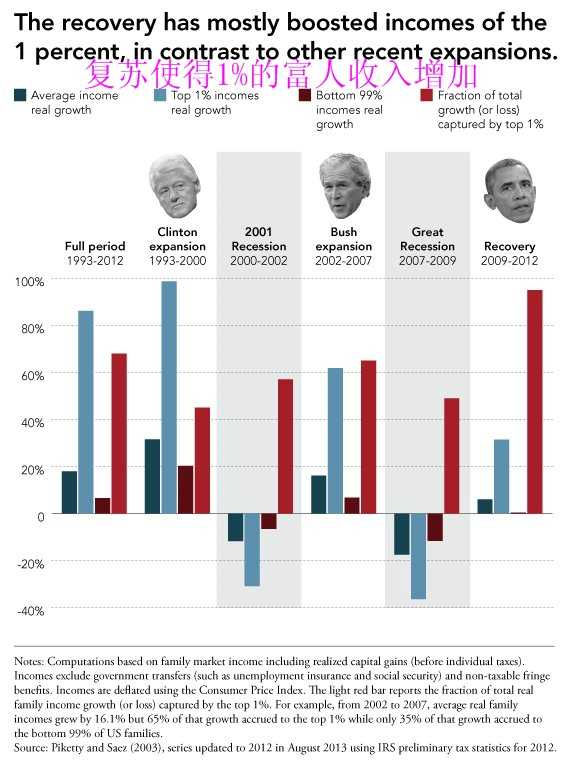 2、企业利润和股票上涨有利于美国富人,显示了大萧条以来不平衡的复苏。这幅图来自加州大学伯克利分校经济学家。