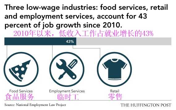 10、事实上,低收入的食品服务行业、零售和临时工等占就业总增长的40%。