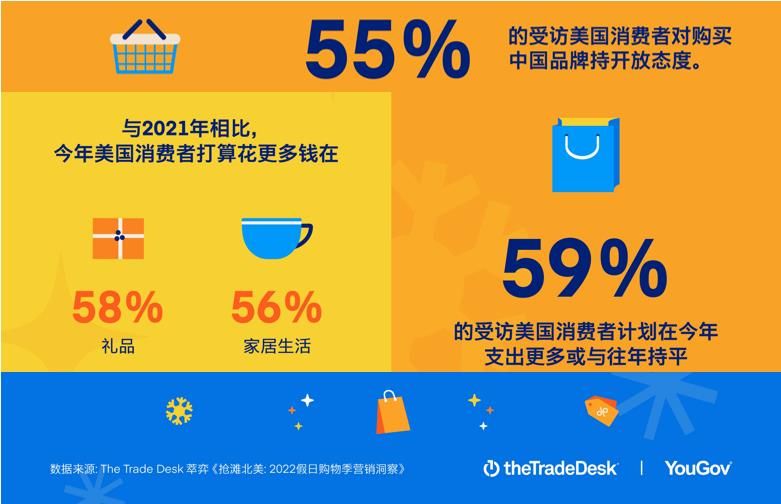 全球领先的广告科技公司 The Trade Desk(纳斯达克:TTD,以下简称TTD)委托调研公司YouGov进行的《抢滩北美:2022假日购物季营销洞察》显示,今年的美国假日季消费市场为中国品牌带来了巨大的营销机会。