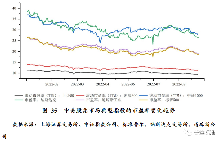 三是全球股票市场大幅调整。今年以来,随着美联储不断加息,道琼斯工业、纳斯达克和标普500指数的平均市盈率水平分别从年初的26.44、38.58、26.43下降至9月的19.22、26.59、18.71,降幅分别为27.31%、31.07%、29.21%。从我国股票市场来看,上证50指数、沪深300指数、中证1000指数的滚动市盈率水平分别从年初的11.39、14.02、36.98下降至9月的9.42、11.38、28.46,降幅分别为17.30%、18.83%、23.04%。