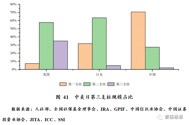 与国外对比来看,美国、日本养老金第三支柱规模分别占本国养老金市场的35%、4.80%,而我国养老金第三支柱规模占养老金市场的比例约为2.03%。因此,我国第三支柱仍有较大的发展空间,保守对标日本来看,我国第三支柱仍有1倍以上的占比提升空间。
