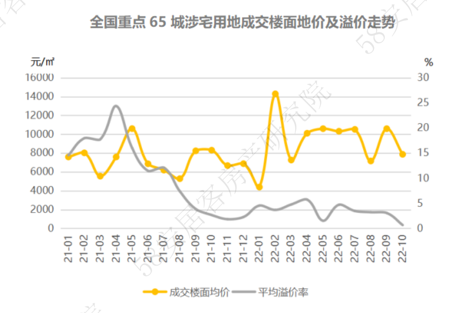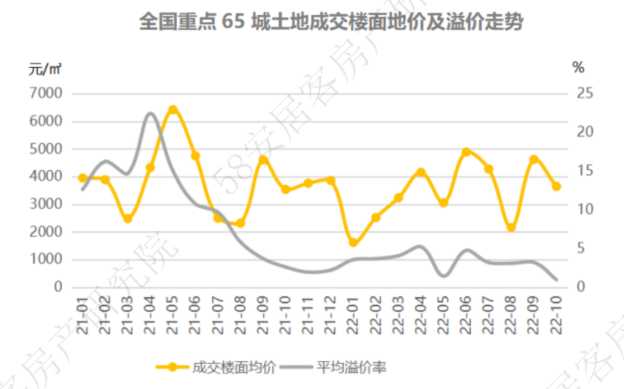 从溢价看,去年至今呈现明显的走低趋势,10月,全国监测65城土地平均成交溢价率仅0.96%,涉宅地块的溢价率也仅为0.67%,跌至去年以来最低。