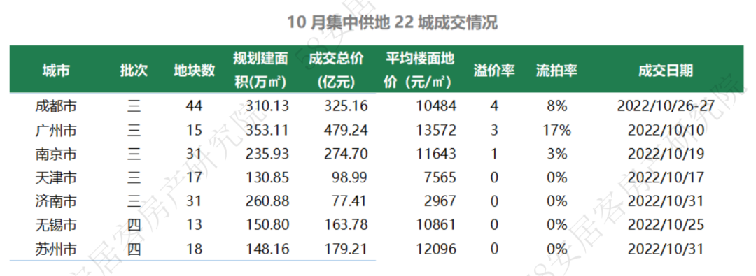 l 多个城市已明确要推出第四、第五批地块,但仍作为前几批次供地的补充,因此整体供应规模有大幅度的下滑,由于临近年底房企忙于冲刺业绩及保交楼任务,总体来看,最后两个月土地市场将平稳过度。