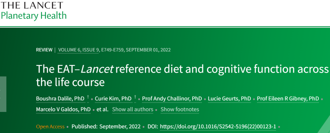 因此,The Lancet Planetary Health杂志发表了一篇综述文章[2],对不同饮食成分与认知功能间关系的研究证据进行了总结,并据此评估了EAT-Lancet健康参考饮食维持认知功能的能力。