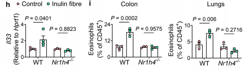 FXR基因(Nr1h4-/-)缺失的情况下,摄入菊粉无法引起2型炎症