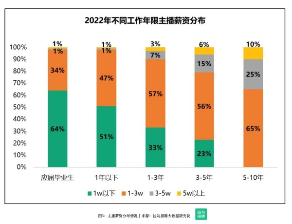 拥有3-5年经验的主播中,月薪超过3万元的比例提高到21%,