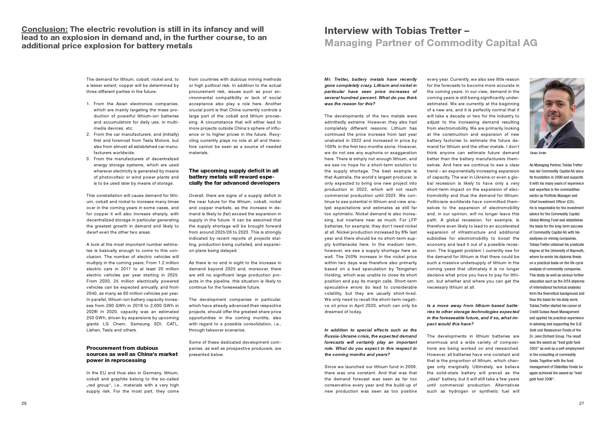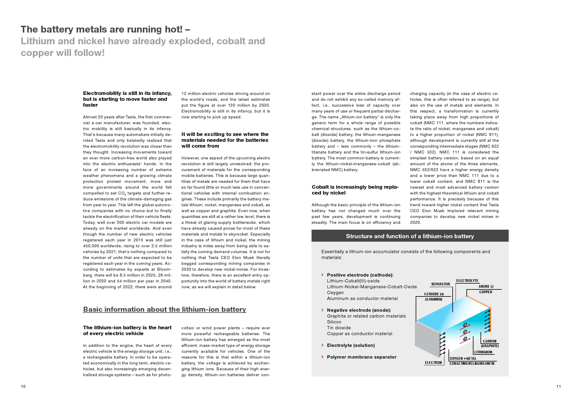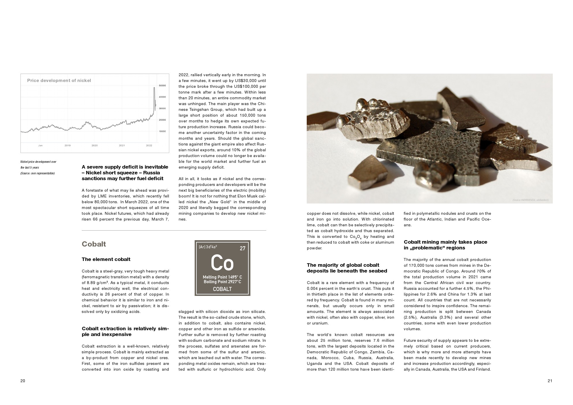 电动汽车革命如火如荼,但是汽车电池的材料采购在很大程度上仍未解决,这是因为它们需要大量的金属。到目前为止,这些金属在配备内燃机的传统车辆中使用很少或更少。主要包括电池金属锂、镍、锰和钴,以及铜和石墨。即使是现在电动汽车数量仍然处于相当低的水平时,也存在着明显的供应瓶颈,这已经导致大多数材料和金属价格飙升。特别是锂和镍。采矿业离满足未来的需求量还有很远的距离。特斯拉首席执行官埃隆·马斯克(Elon Musk)在2020年恳求相应的矿业公司开发新的镍矿,这并非毫无意义。