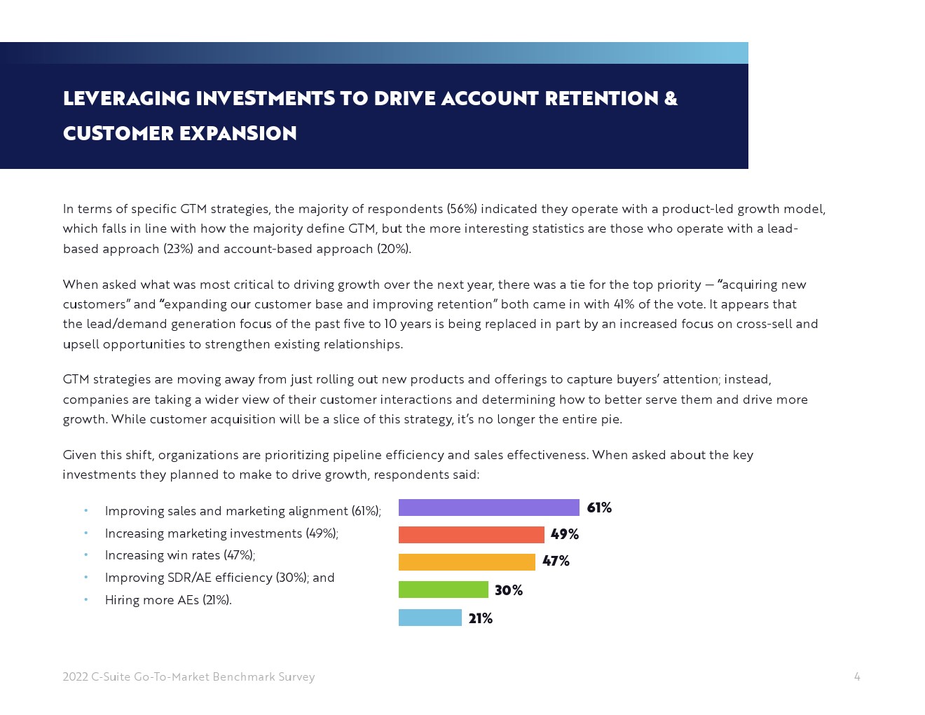 受访高管报告了他们计划进行的各种投资,其中61%表示销售和营销协调是首要任务。