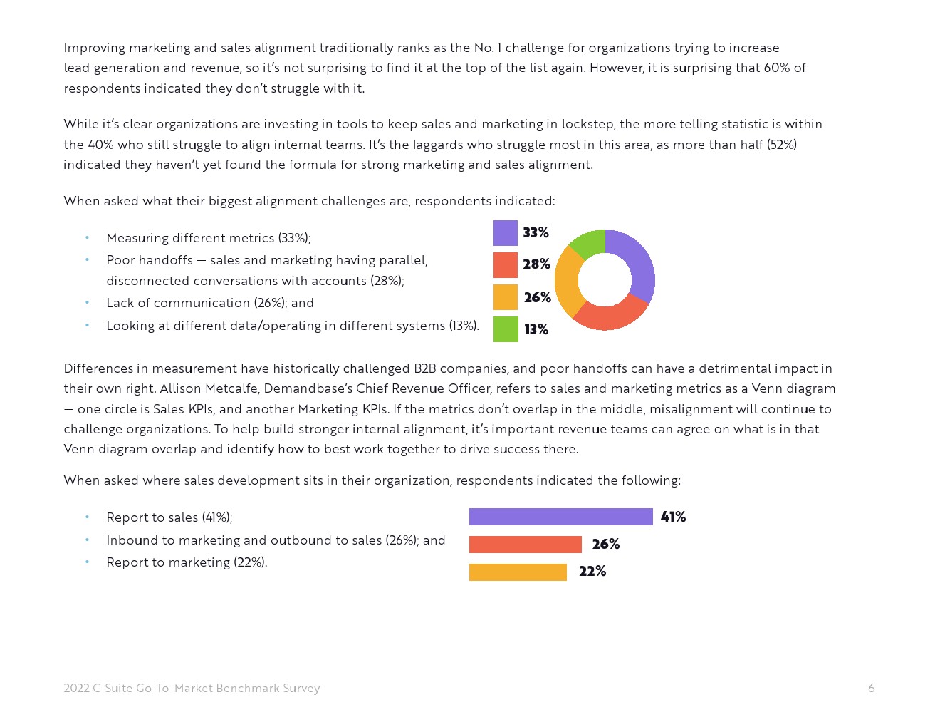 两个部门之间的协调一直是B2B的一个主要挑战。调查发现,衡量指标不同(33%)是最常见的原因,其次是切换不良(28%)和缺乏沟通(26%)。