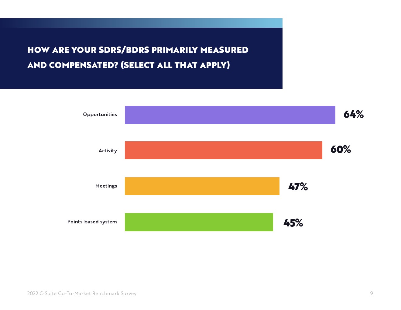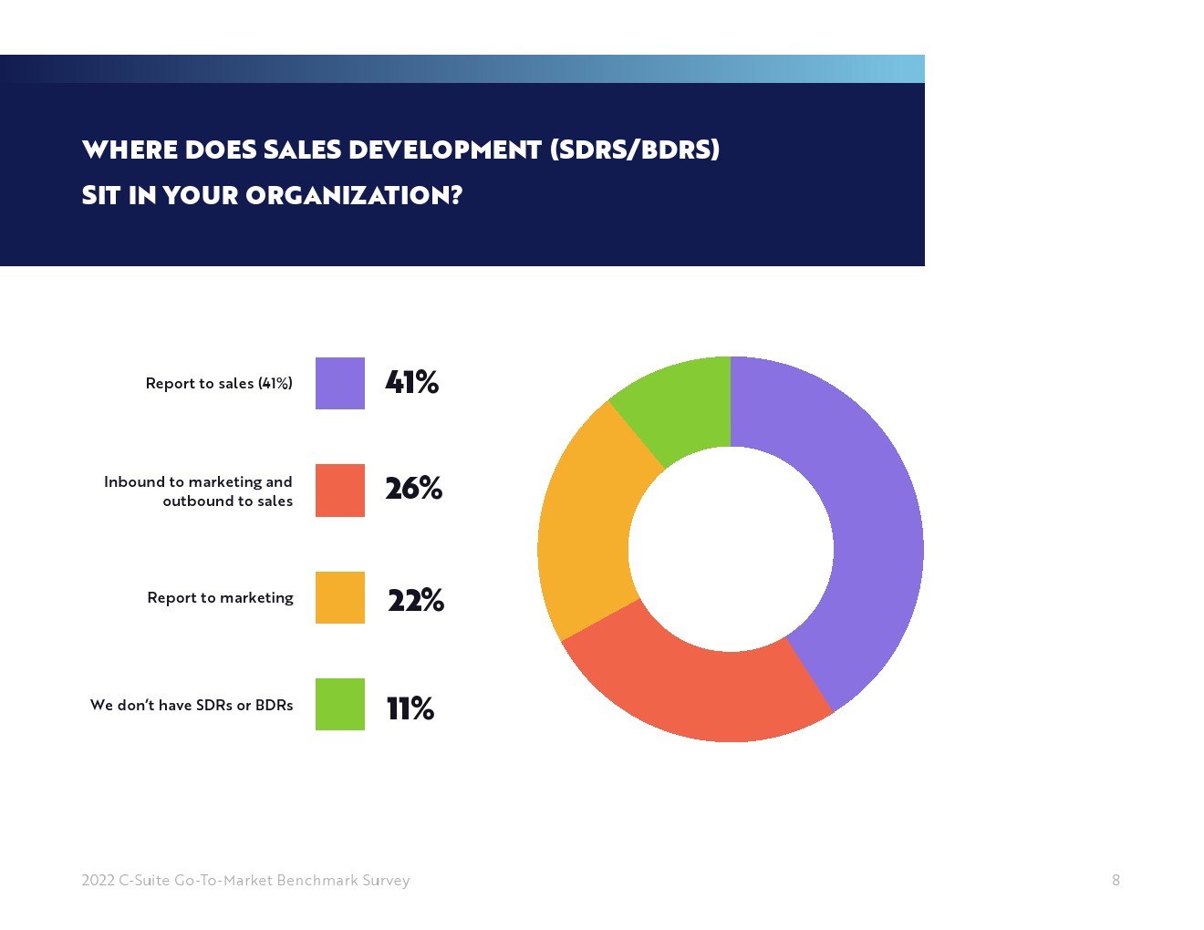 虽然41%的SDR(销售开发代表)向销售报告,22%向营销报告,但26%的SDR实际上采用了一种混合模式,即销售处理输出工作,营销处理输入工作。