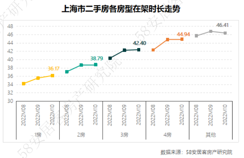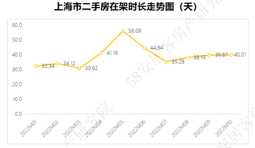 10月,上海市二手房在架时长为40.01天,环比增加0.4%。月度二手房挂牌量持续出现增加,表明购房者持续处于观望状态。