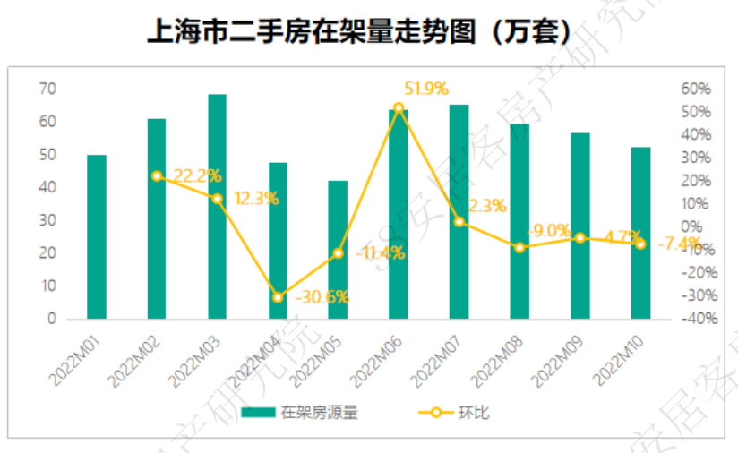 10月,上海市二手房挂牌量出现一定回落,跌幅为7.4%。目前,上海市二手房挂牌量持续回落,与当前市场出现调整相关,房东挂牌热情下跌。