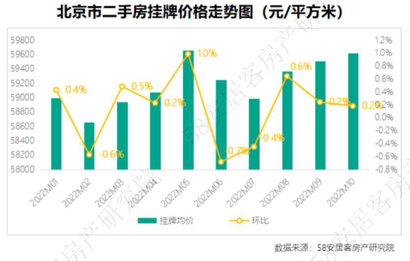 10月,北京市二手房挂牌均价为59620元/平方米,环比上涨0.2%,其中中心区域的挂牌均价会上涨的明显一些。目前,北京市二手房均价上涨是不利于市场的回暖,从10月的成交数据来看,北京市二手房成交量也出现了一定回落,房价上涨可能是主要因素。