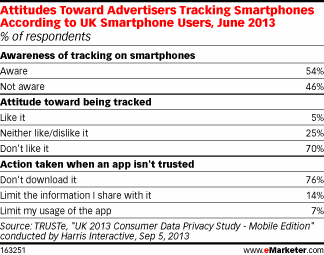 在英国,大部分智能手机用户知道广告商可以追踪他们的设备,据2013年六月一家隐私管理公司TRUSTe调查显示,实际上至少七成用户了解,并且非常反感他们的智能手机正在被后门跟踪。