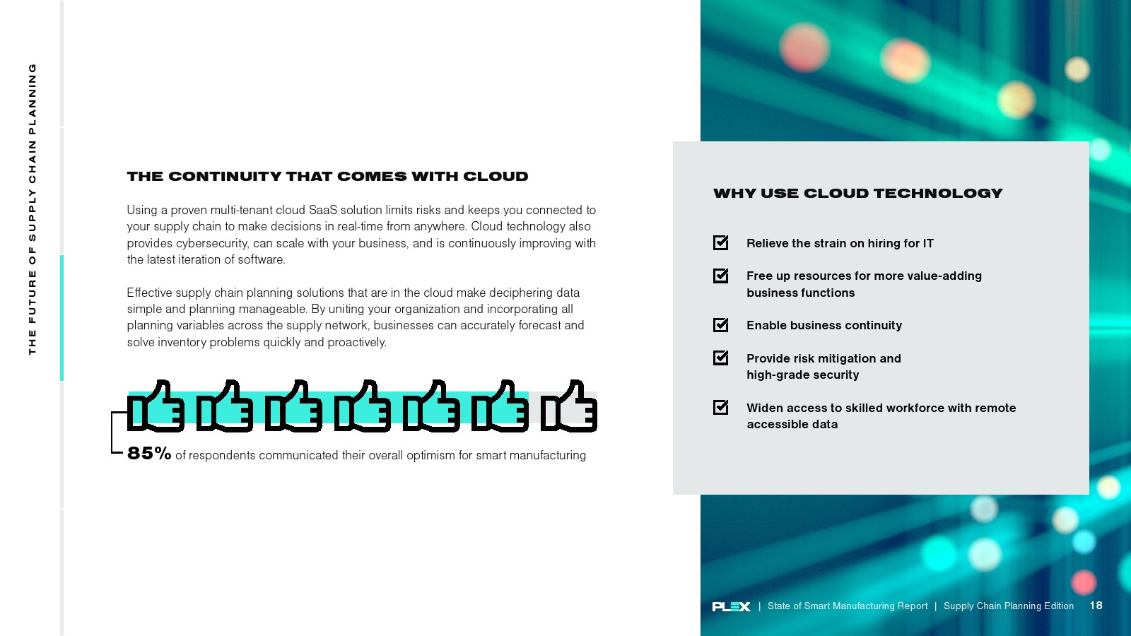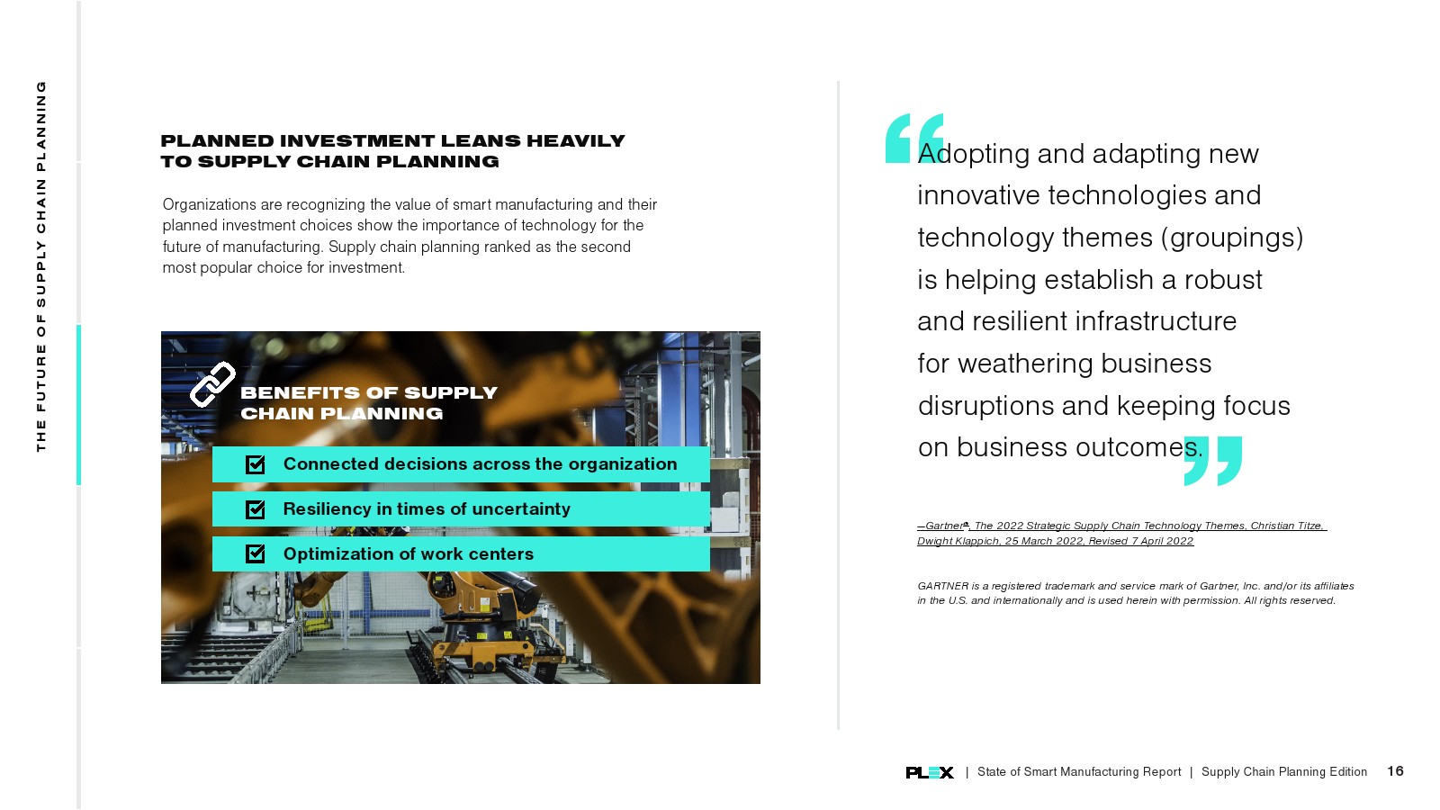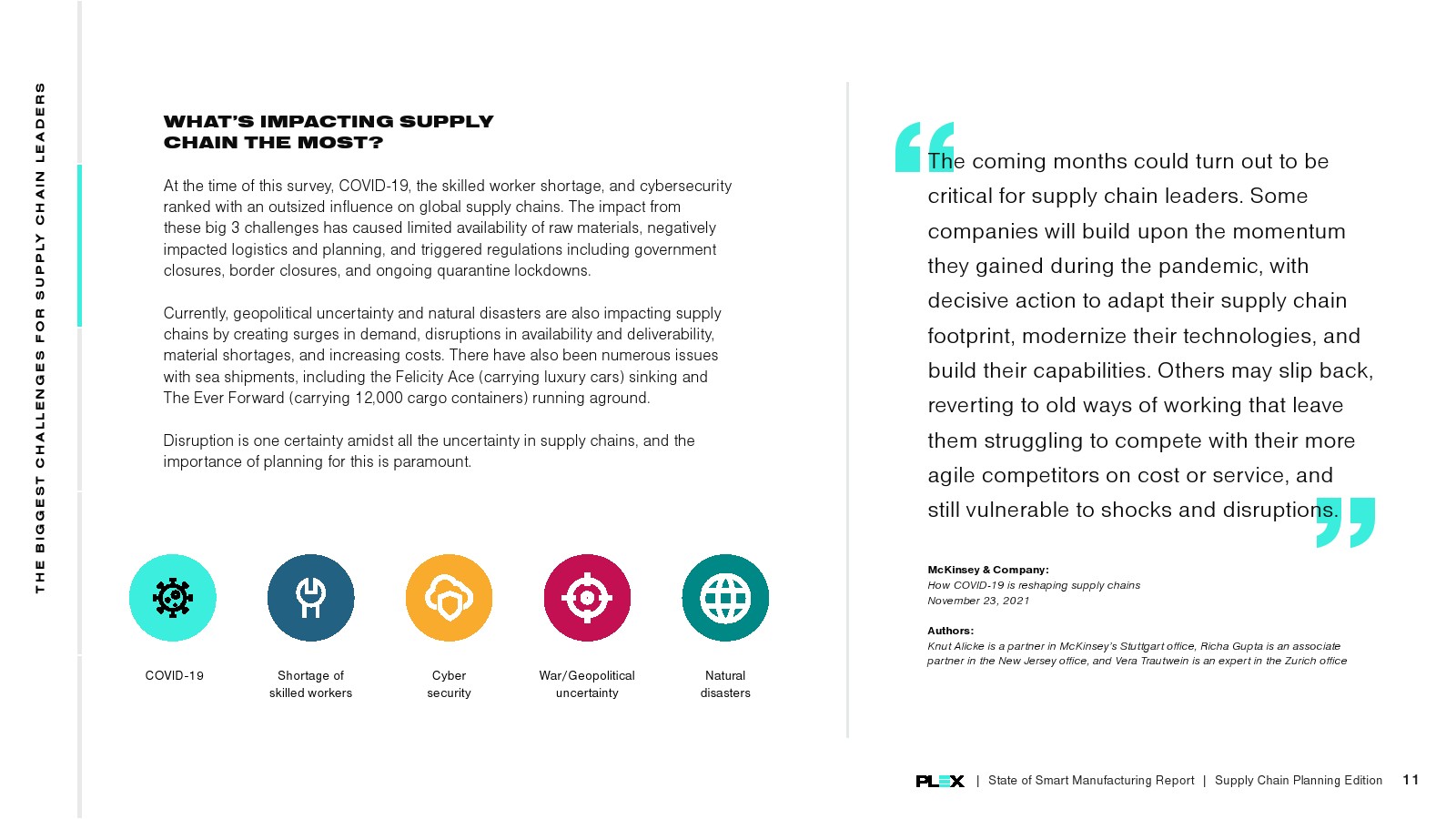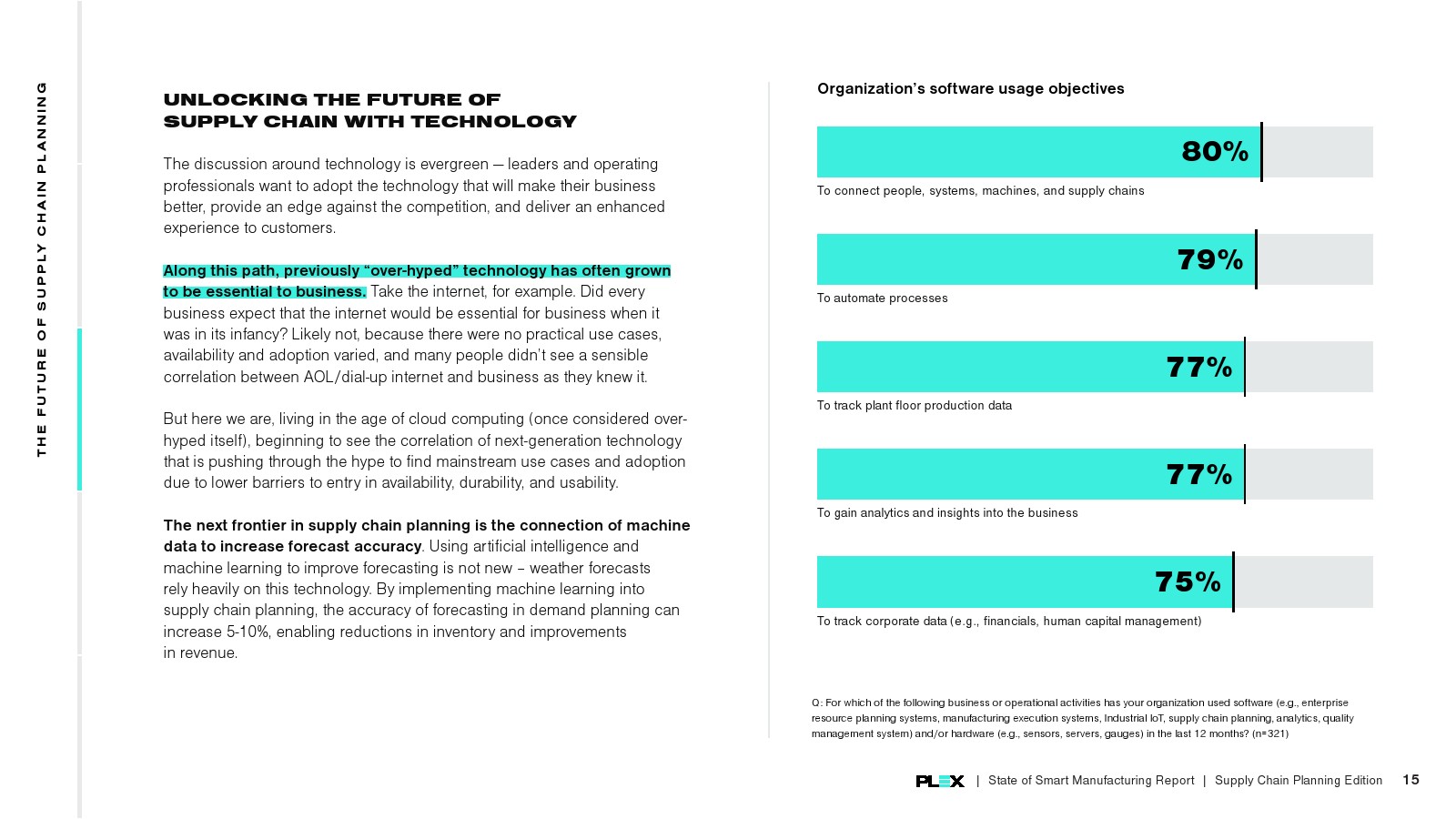 - 74%的受访者正在积极使用或计划使用机器学习/人工智能,特别是在管理供应链规划的复杂性方面。