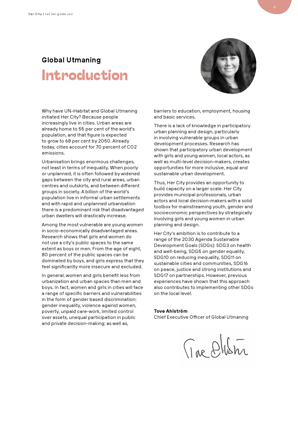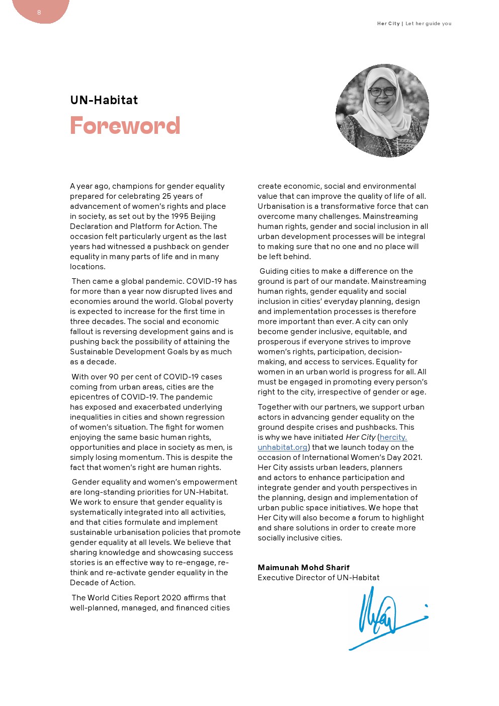 联合国人居署发布了新报告“她的城市”,指导城市与女孩一起进行可持续和包容性的城市规划和设计。越来越多的人住在城市里,城市人口已占全球人口的55%。预计到2050年,这一数字将增至68%。如今,城市的二氧化碳排放量已经占到全球的70%。