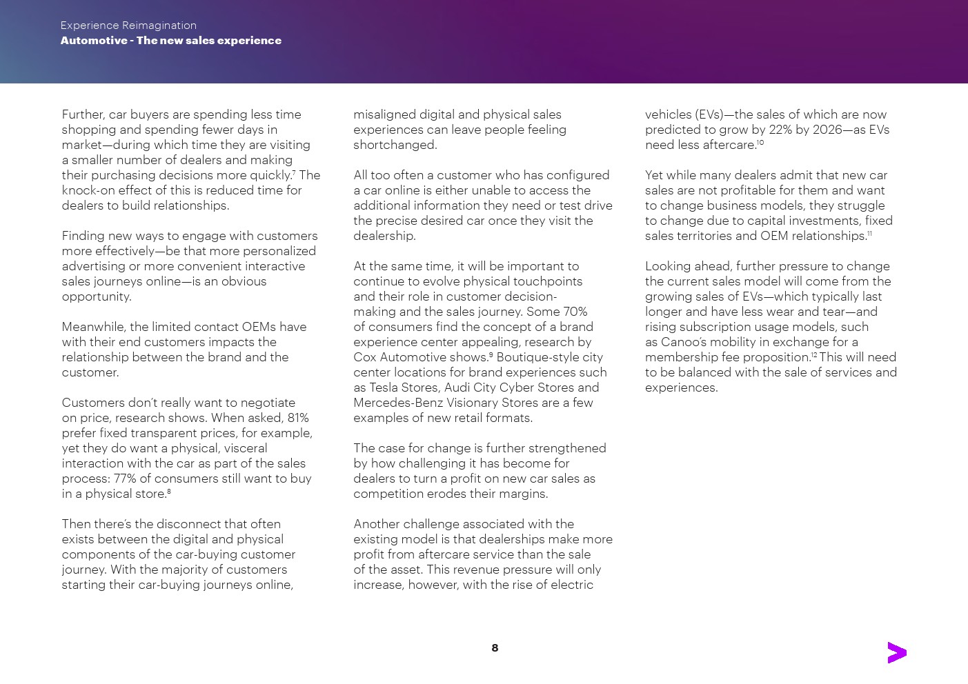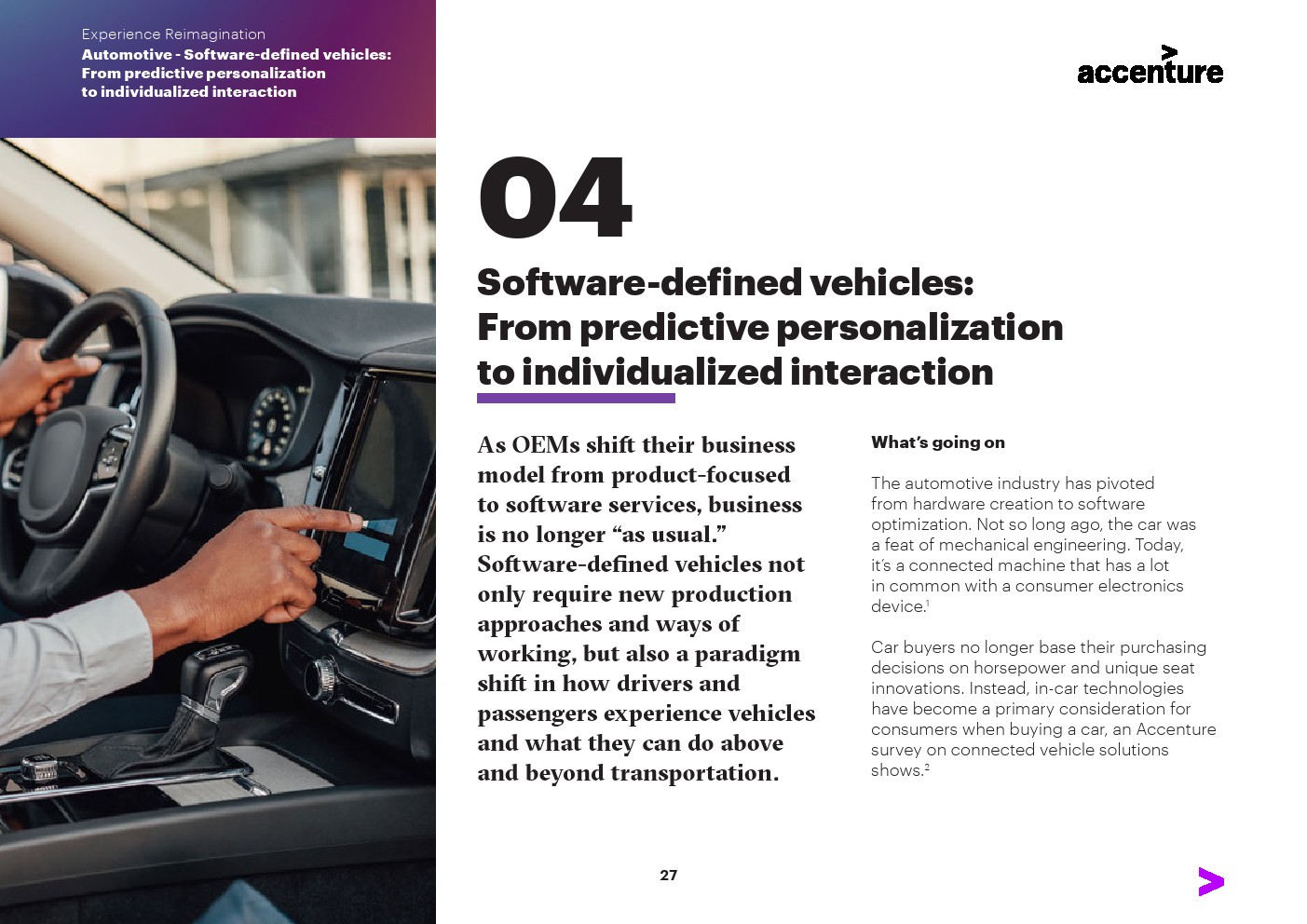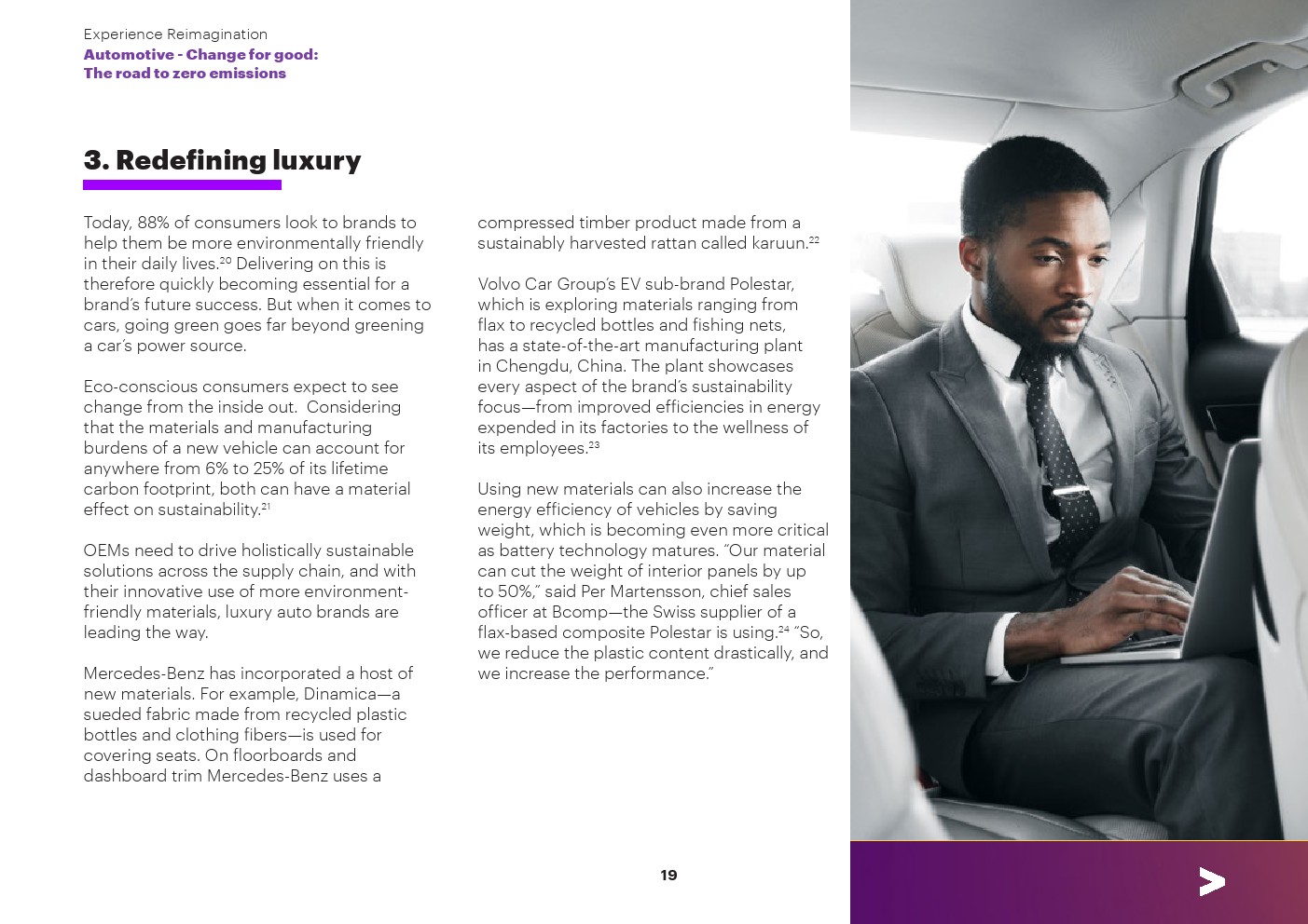 埃森哲发布了新报告“重塑汽车体验”。人们对可持续发展的期望不断提高,豪华汽车的新定义和数字增强汽车将永远改变人们对汽车的看法。现在是汽车行业根据客户的新价值观和需求重新设计产品、服务和体验的时候了。