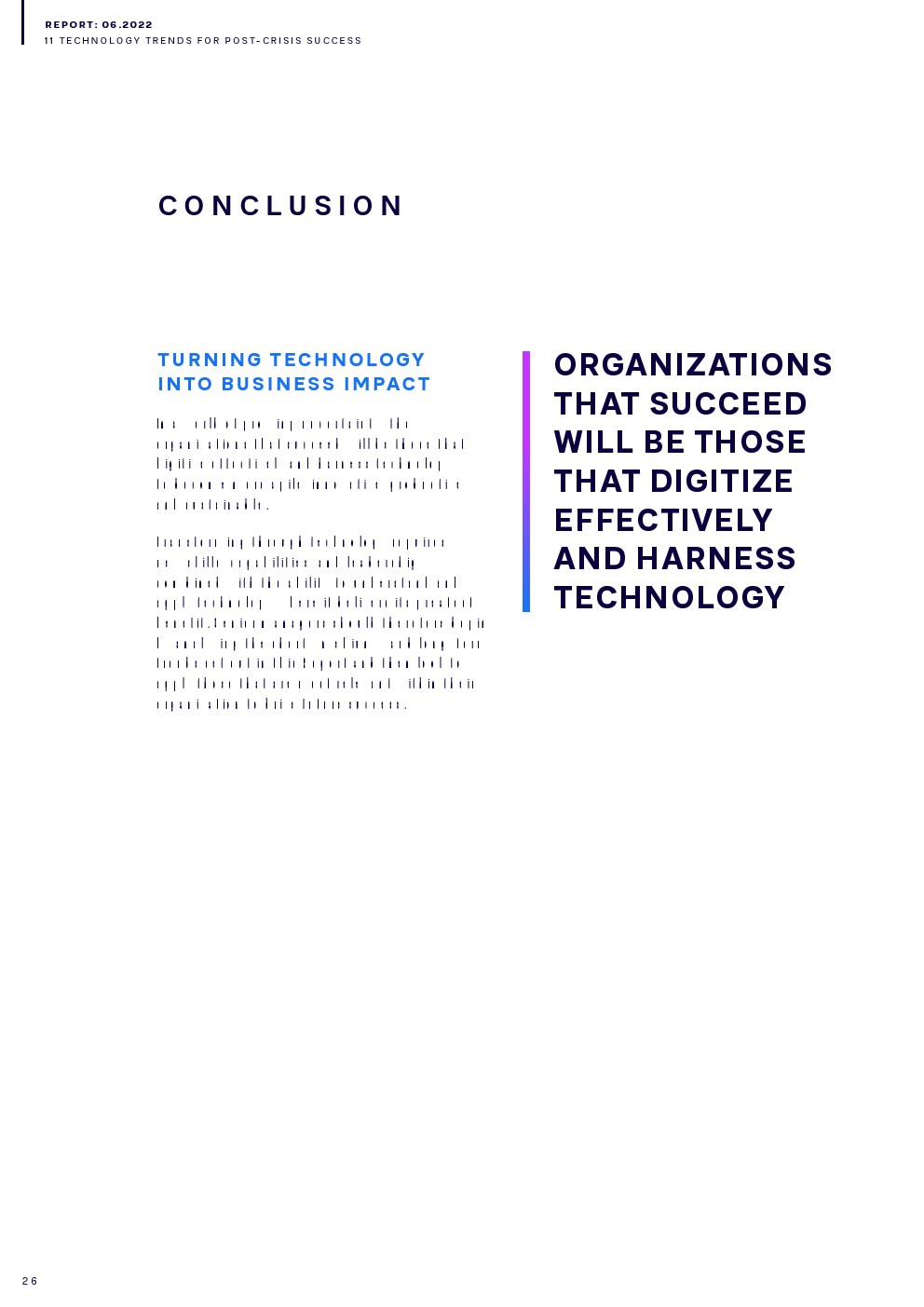 报告的目的是为了帮助高管确定当前和未来最重要的一些技术趋势。成功应对这些趋势的公司将定位于建立可持续的竞争优势,获得更高的客户和员工满意度、成本效益。最重要的是,在技术知识和技能方面获得优势。