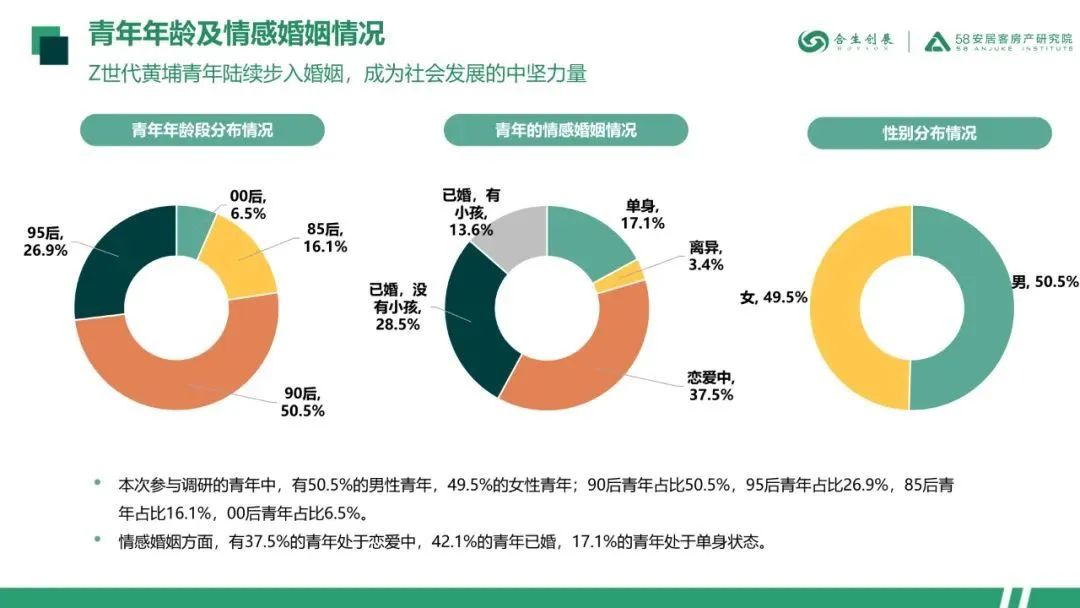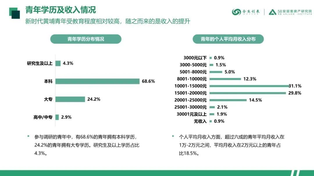 本次报告聚焦广州黄埔青年,通过线上问卷调研的形式观察青年们的置业观、生活观。参与调研的为85后-00后的青年们。学历以本科为主,超过六成的青年平均月收入在1万-2万元之间。