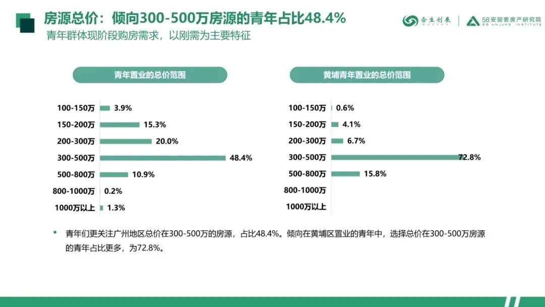 选购房源时,黄埔青年更倾向于选择总价在300-500万的房源,首付资金则多数与另一半共同承担或父母支持。月供房贷方面,多数青年每月房贷占收入的比例在30-40%左右。